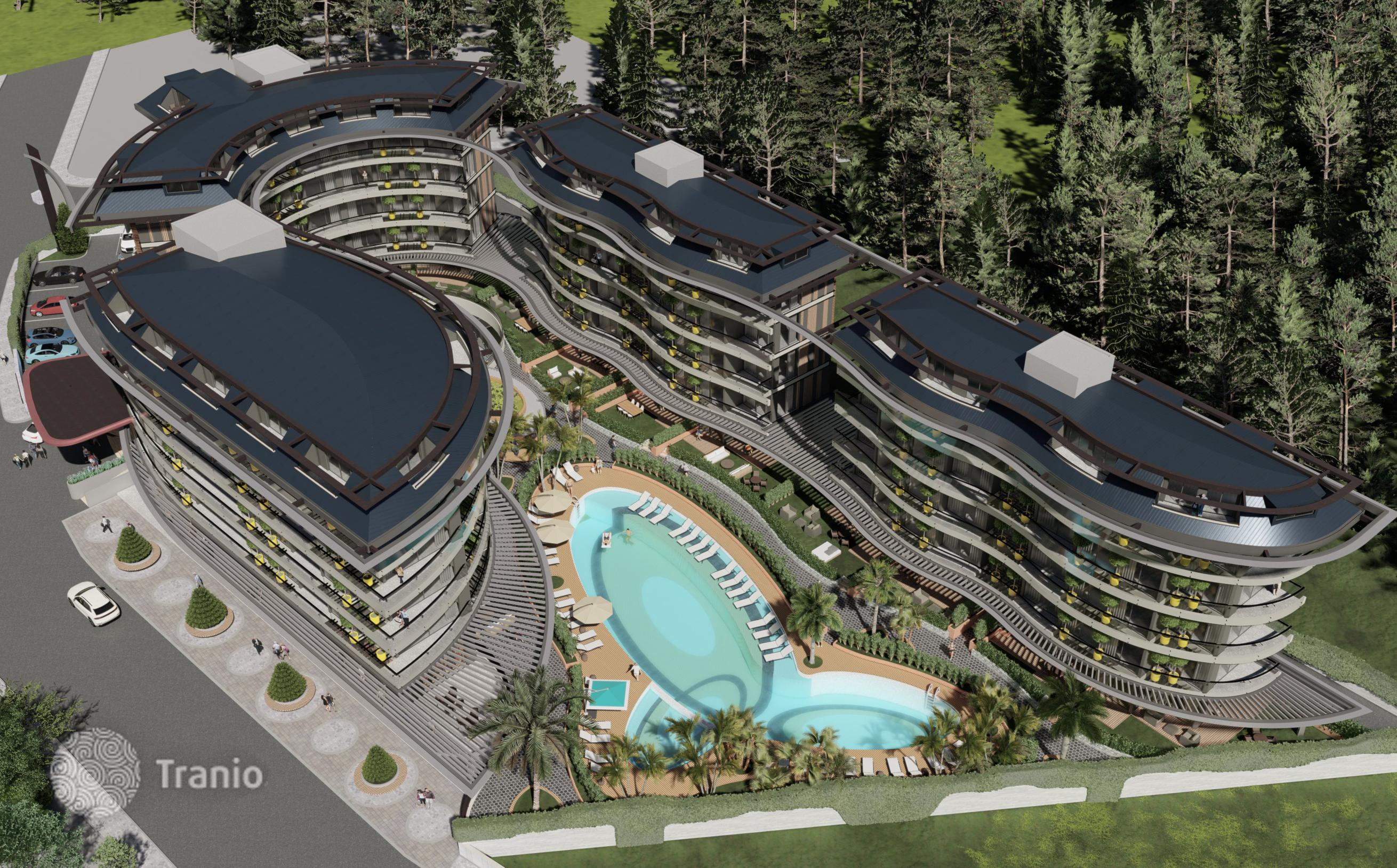 Комплектация апартаментов: входная стальная дверь, видеодомофон, встроенная мебель на кухне и в ванных комнатах, встроенный шкаф в коридоре, полный пакет бытовой техники (холодильник, посудомоечная машина, варочная поверхность, духовка, вытяжка, стиральная машина), кондиционер в каждой комнате, подогрев полов в ванной комнате, душевые кабины, сантехника, электрический водонагреватель.