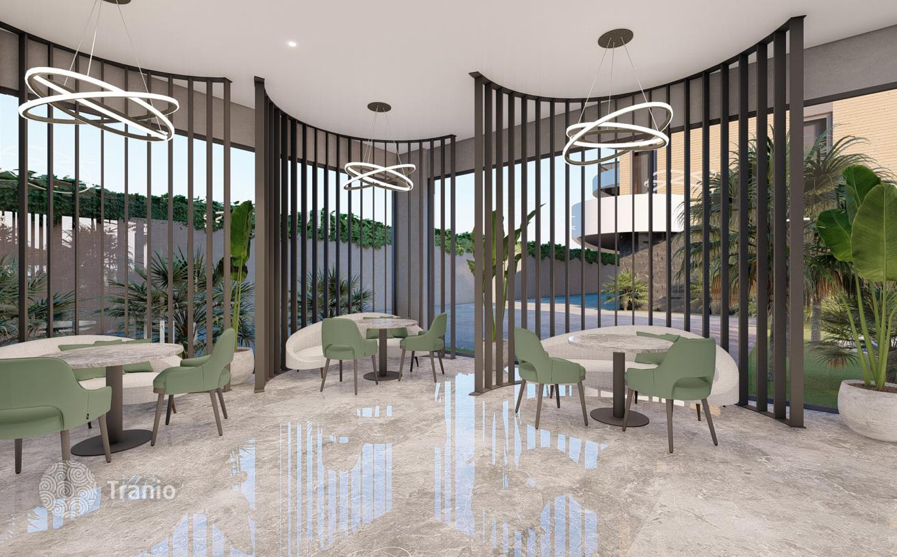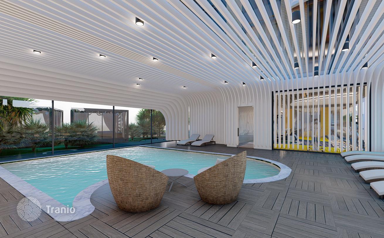 Технические характеристики квартир: стальные входные двери, внутренние двери МДФ, керамическое напольное покрытие высшего класса в прихожей и на кухне, гардероб в прихожей, лакированная встроенная кухня, гранитная столешница на кухне, встроенная мебель в ванной комнате, керамическая плитка высшего класса в ванной комнате, ламинат в гостиной и спальне, точечные светильники, отделка потолка гипсокартоном, пластиковые окна ПВХ, керамический пол на балконе, стеклянное ограждение балкона и алюминиевые перила.