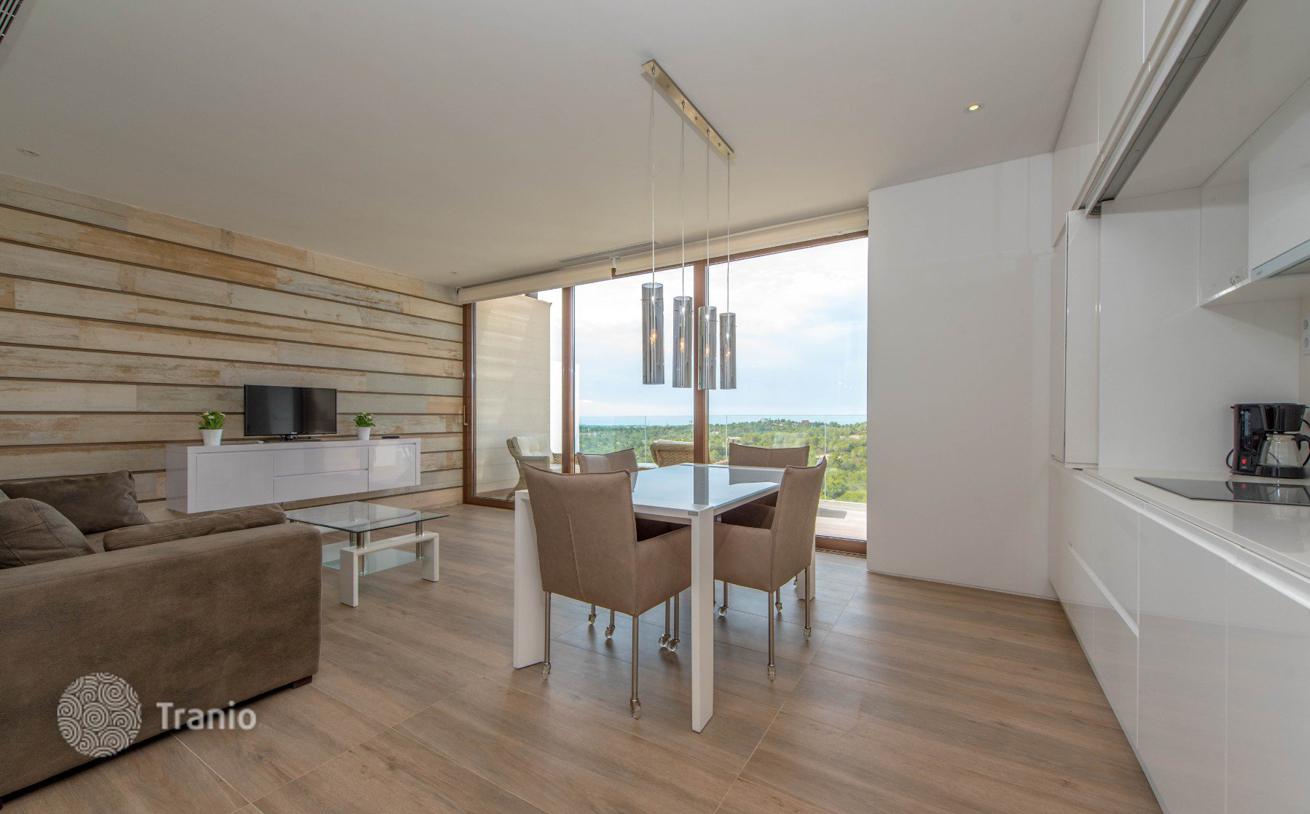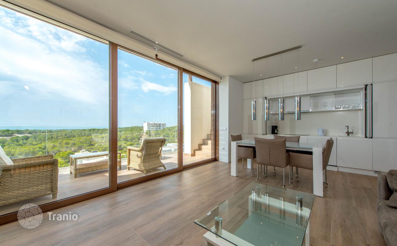 Этот пентхаус имеет просторную гостиную-столовую и открытую кухню, укомплектованную всей бытовой техникой. Изюминкой является терраса с видом на общий бассейн и пышные зелёные насаждения. В доме есть две светлые спальни и частная терраса с открытой кухней. В числе дополнительных преимуществ — парковочное место и отдельная кладовая в подвале.
