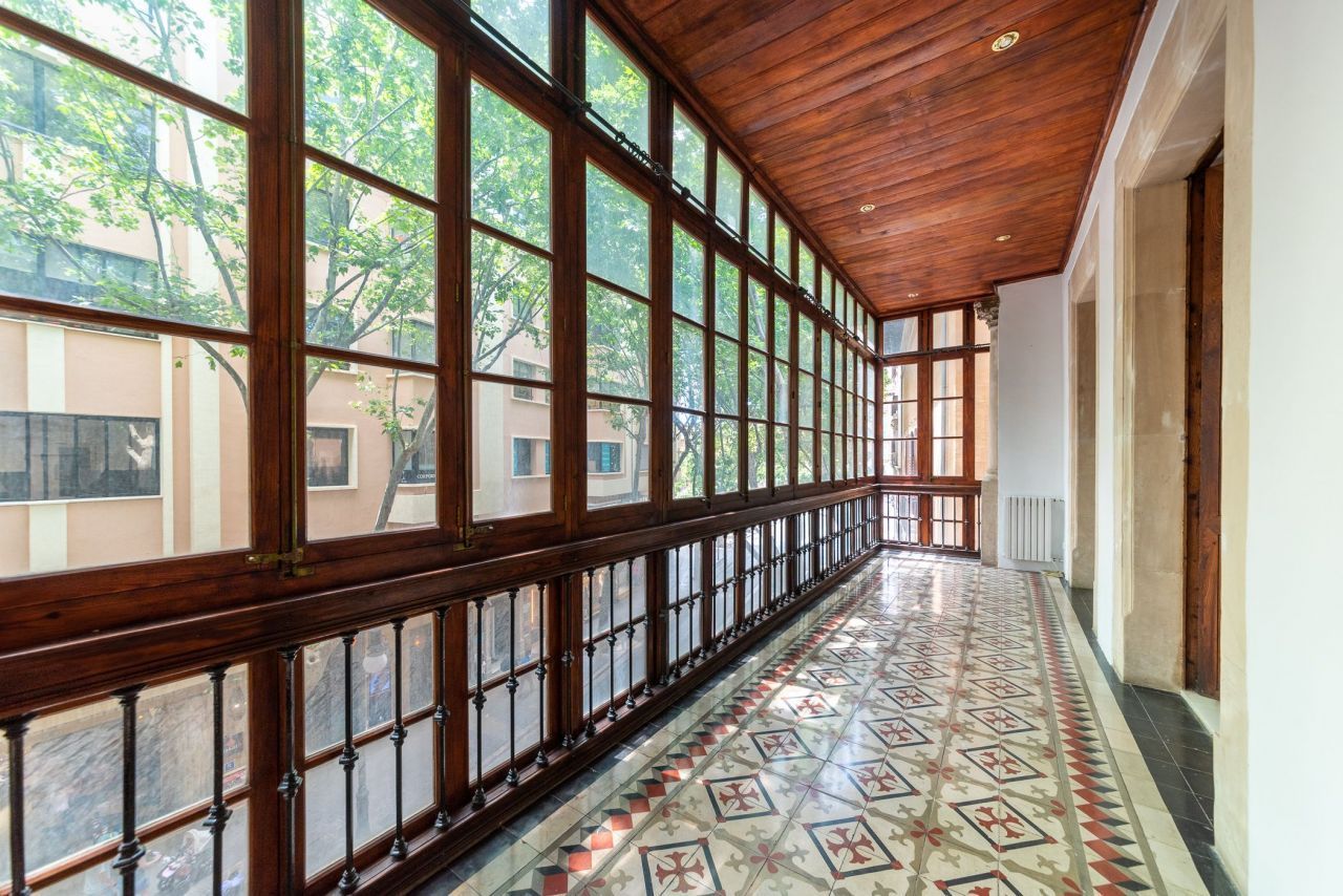 Уникальная возможность приобрести полностью отремонтированную квартиру в центре Пальмы. Этот благородный первый этаж с высокими потолками и большой террасой / зимним садом заливает дом светом.