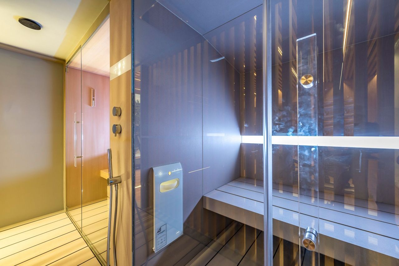 Квартира имеет высококачественную отделку и оснащение, включая радиаторы и кондиционеры горячего/холодного воздуха. В комплексе есть бассейн, тренажерный зал, сауна и турецкая баня. Дополнительные удобства включают парковочное место и кладовую.