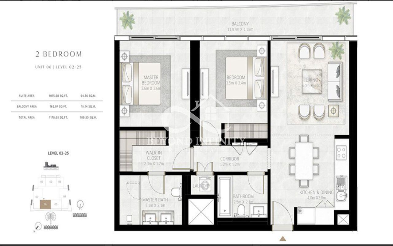 Прекрасный объект недвижимости в городе Пальма-Джумейра, расположенный у моря, представляет собой идеальное место для комфортного проживания. Площадь брутто данного жилья составляет 109.5 квадратных метров, что обеспечивает просторные и уютные помещения.