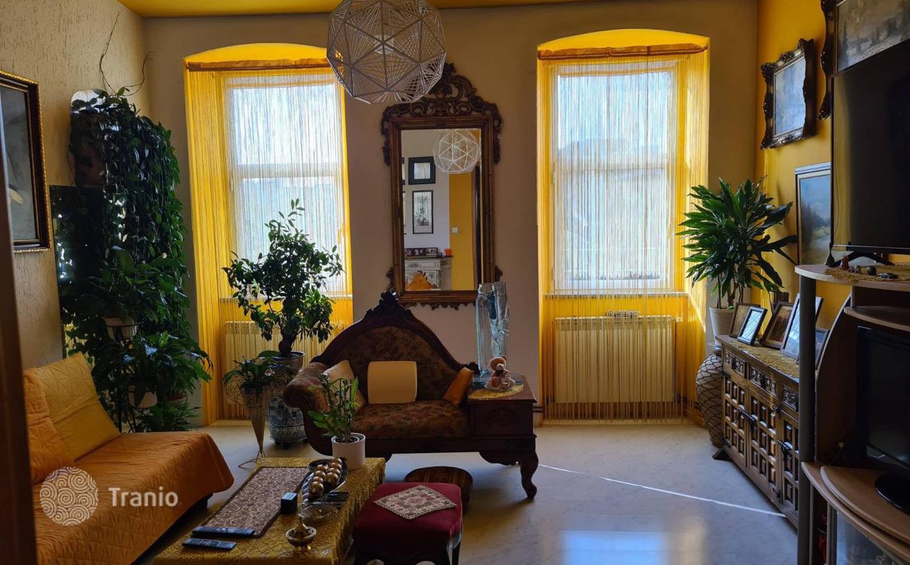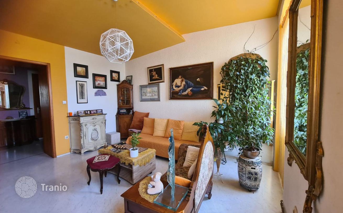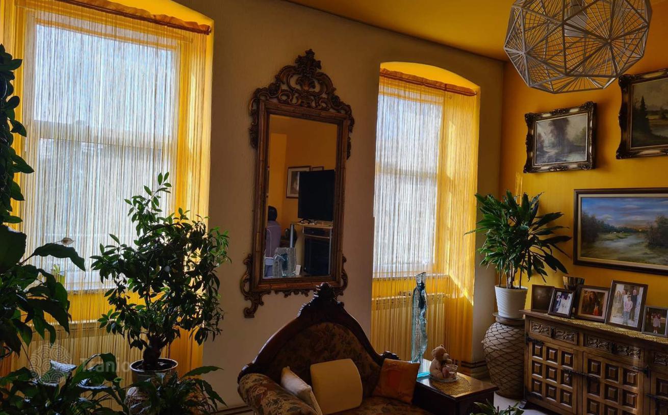 Продается красивая, стильно обставленная квартира на втором этаже площадью 83 м². Квартира состоит из 2 спален, кухни со столовой, гостиной, 2 ванных комнат и туалета. За зданием разбит небольшой ландшафтный сад. Информация: