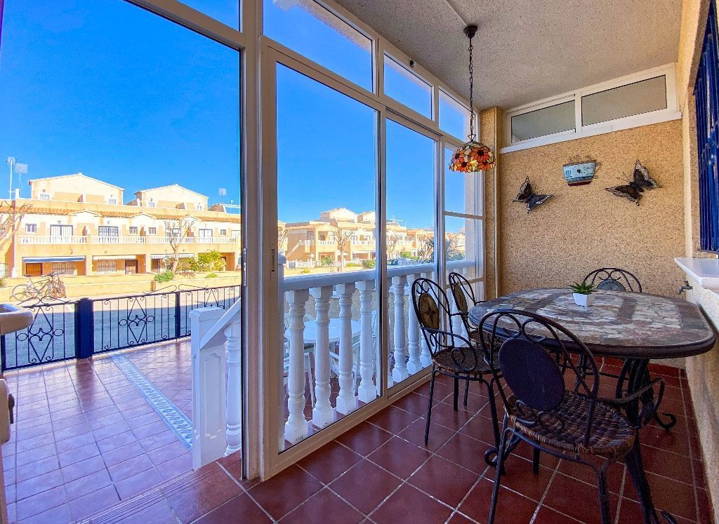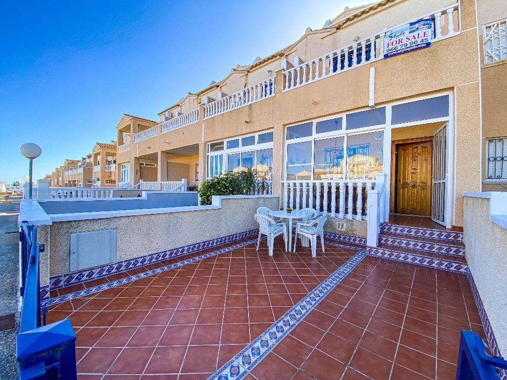 На продажу дом в Пунта Прима, Коста Бланка, Испания.Таунхаус с патио, террасами с видом на море продается в популярном районе Пунта Прима, в нескольких минутах ходьбы от пляжа и местных удобств.В доме 2 спальни, ванная комната и гостевой туалет, отдельная кухня с кладовой, гостиная с обеденной зоной, две террасы, а также частный солярий на крыше с видом на море. Дом прекрасно оборудован, оснащен кондиционером и продается полностью меблированым.В компелксе есть парковка и бассейн.Пунта Прима - типичный испанский морской курорт, расположенный на южном побережье Коста Бланка и менее чем в 30 минутах езды от двух международных аэропортов Сан-Хавьер и Аликанте в Мурсии. Знаменитые пляжи награждены голубым флагом за чистоту и оснащение. Здесь прекрасный выбор магазинов, кафе, супермаркетов, баров и ресторанов. Автобус соединяет Пунта Прима с аэропортом и другими прибрежными городками. А самое главное - здесь вас ждет 320 солнечных дней в году!Задайте интересующие вас вопросы менеджеру направления
