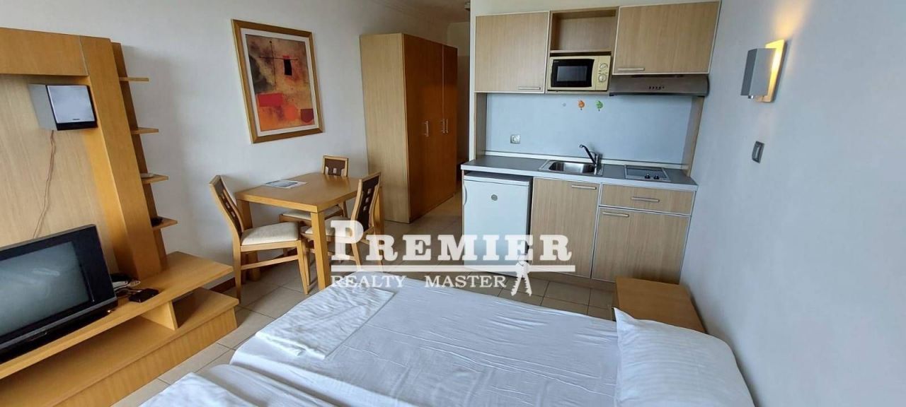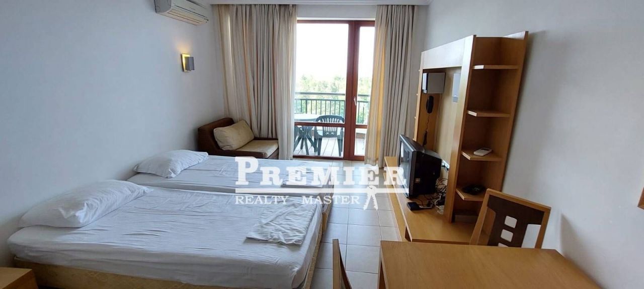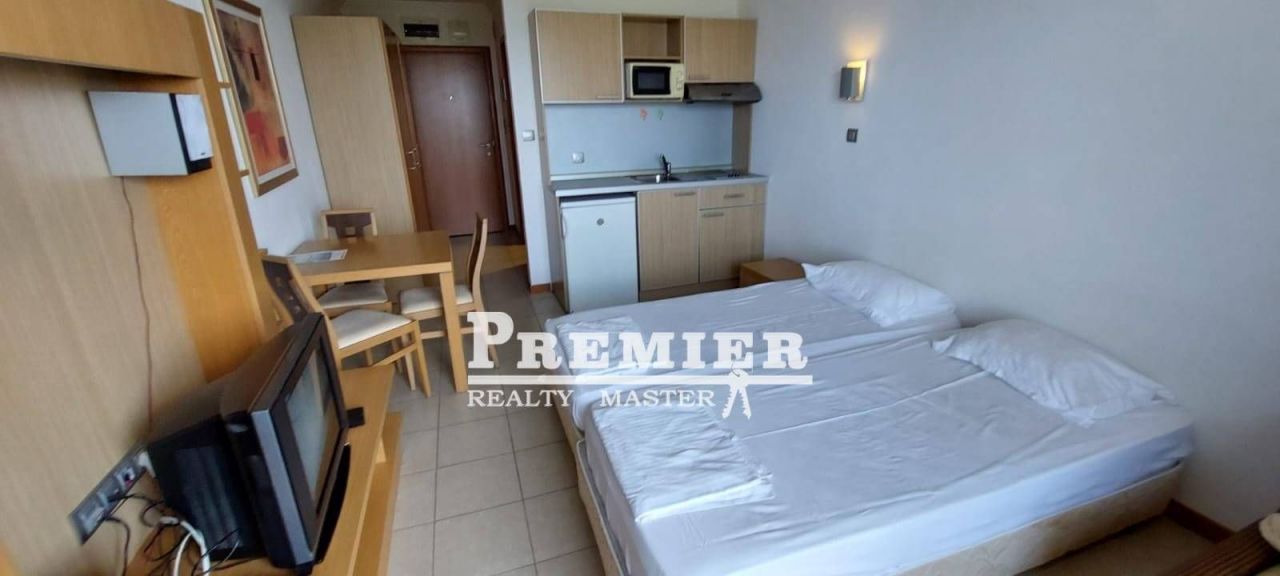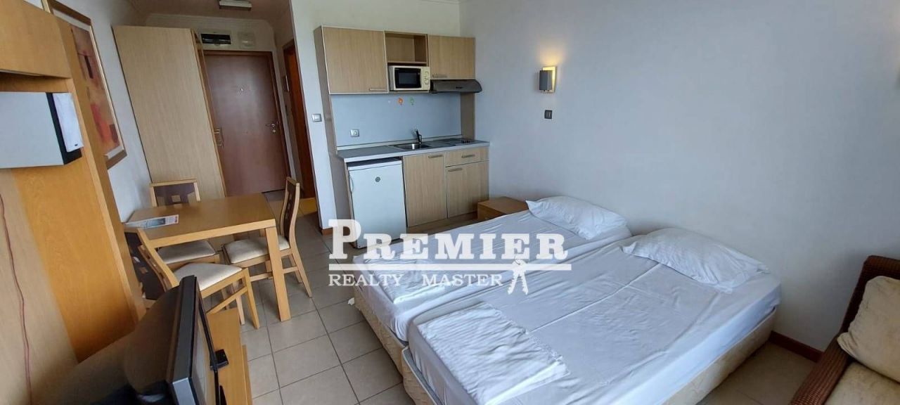 Студия площадью 44м2 в роскошном комплексе в Равде, на 1й линии у моря. В номере мебель и бытовая техника. Терраса.На территории открытые и крытые бассейны, теннисные корты, спа-комплекс, магазины. Возможность круглогодично использовать или сдавать в аренду.