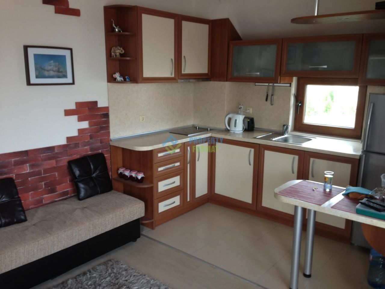 Апартамент находится в 300 м от берега моря. Состоит: гостиная с кухонной зоной, спальня, санузел, коридор и балкон. Имеется кондиционер, мебель, техника. Во дворе дома есть бассейн.