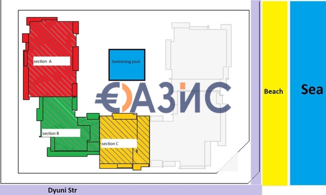 Комплекс Олимпия Бич 2013 года строительства. Комплекс имеет полностью завершенную инфраструктуру – прилегающую парковку, живописно оформленное внутреннее пространство – красивые цветочные аллеи, зону отдыха и пляж, бассейн для взрослых и детей. Комплекс обеспечивает 24-часовую охрану, прилегающий пляж с водными видами спорта и аттракционами.