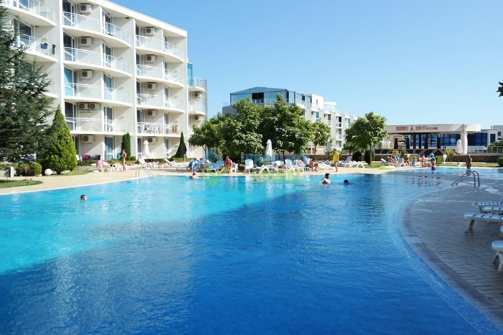 На закрытой территории комплекса с ландшафтным озеленением собственники апартаментов и отдыхающие могут воспользоваться открытыми бассейнами для взрослых и детей, зоной для загара и отдыха с шезлонгами и зонтами, баром, рестораном, детской площадкой, спа центром, фитнес залом, 24-часовой охраной, автомобильным паркингом.