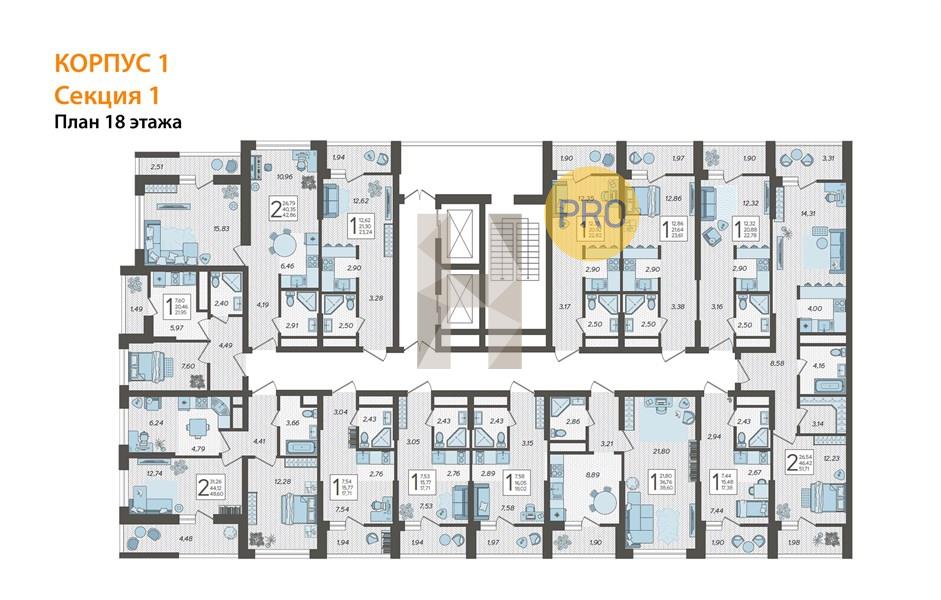 Квартира: 1 к 51,71 кв.м., 18 этаж в комплексе Кислород, 2 очередь, корп.1, сдача: 3кв. , этажей: 19, адрес Ясногорская ул., , Застройщик: AVA.