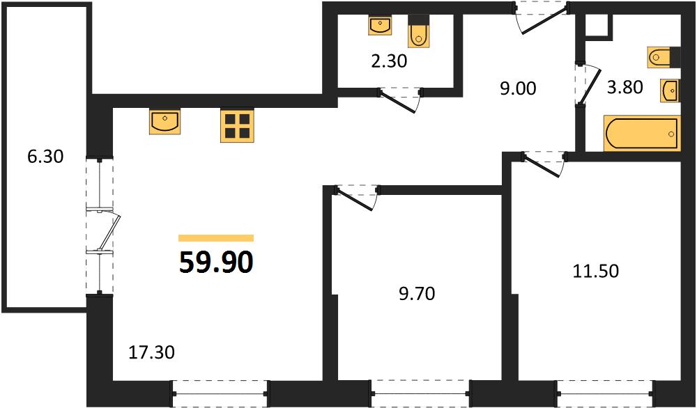 Апартамент: 2 к 59,90 кв.м., 6 этаж в комплексе Нескучный сад, 2 очередь, корп.2, сдача: 3кв. , этажей: 10, адрес Ленина ул., , Застройщик: Неометрия.