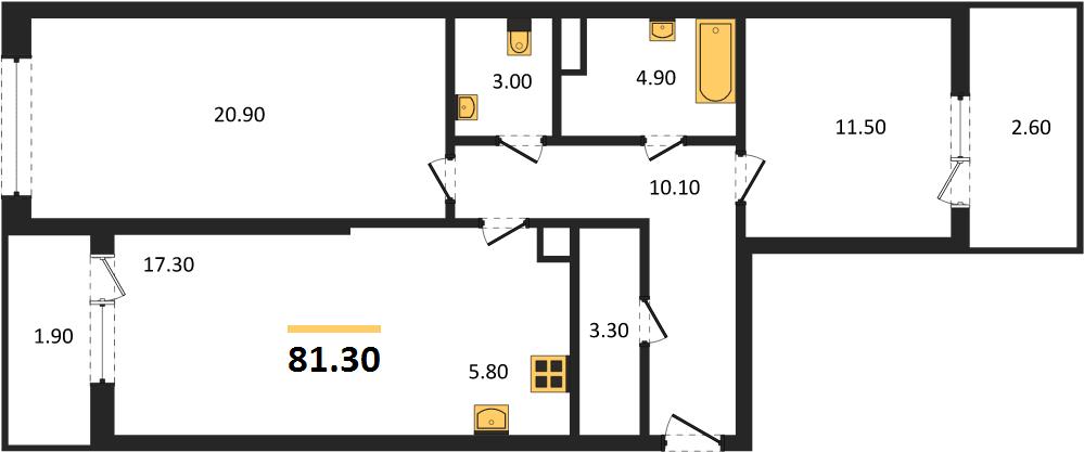 Квартира: 2 к 81,30 кв.м., 2 этаж в комплексе Хозяин Морей, 1 очередь, корп.1, сдача: 4кв. , этажей: 12, адрес Супсех село, д. литер 1, Застройщик: ТОЧНО.