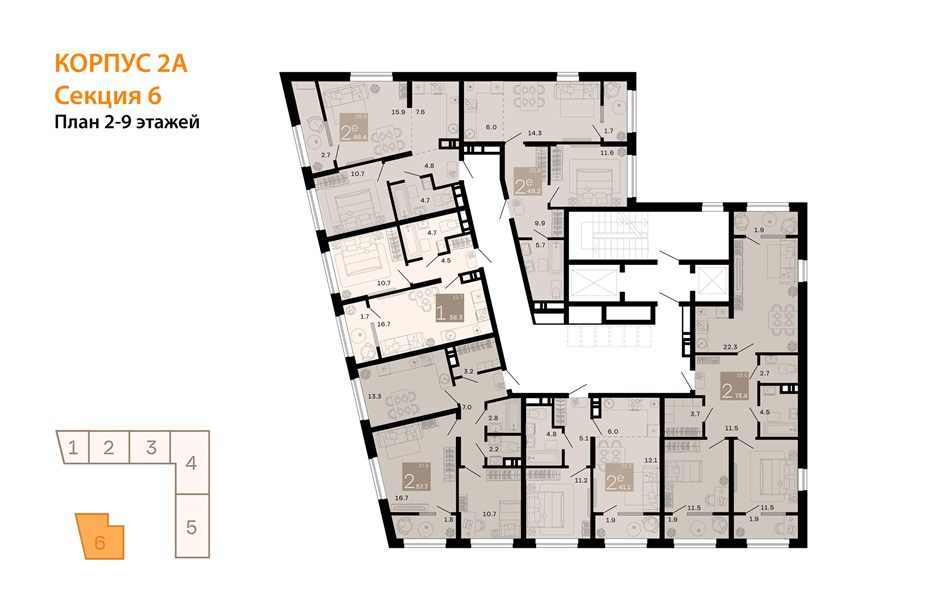 Квартира: 1 к 41,10 кв.м., 7 этаж в комплексе Хозяин Морей, 2 очередь, корп.2А, сдача: 4кв. , этажей: 9, адрес Супсех село, д. литер 2А, Застройщик: ТОЧНО.