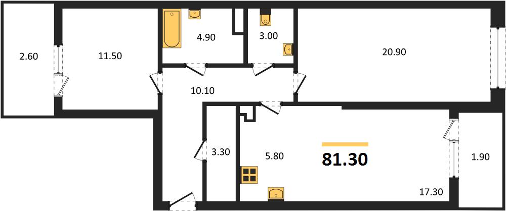 Квартира: 2 к 81,30 кв.м., 7 этаж в комплексе Хозяин Морей, 2 очередь, корп.2Б, сдача: 4кв. , этажей: 8, адрес Супсех село, д. литер 2Б, Застройщик: ТОЧНО.