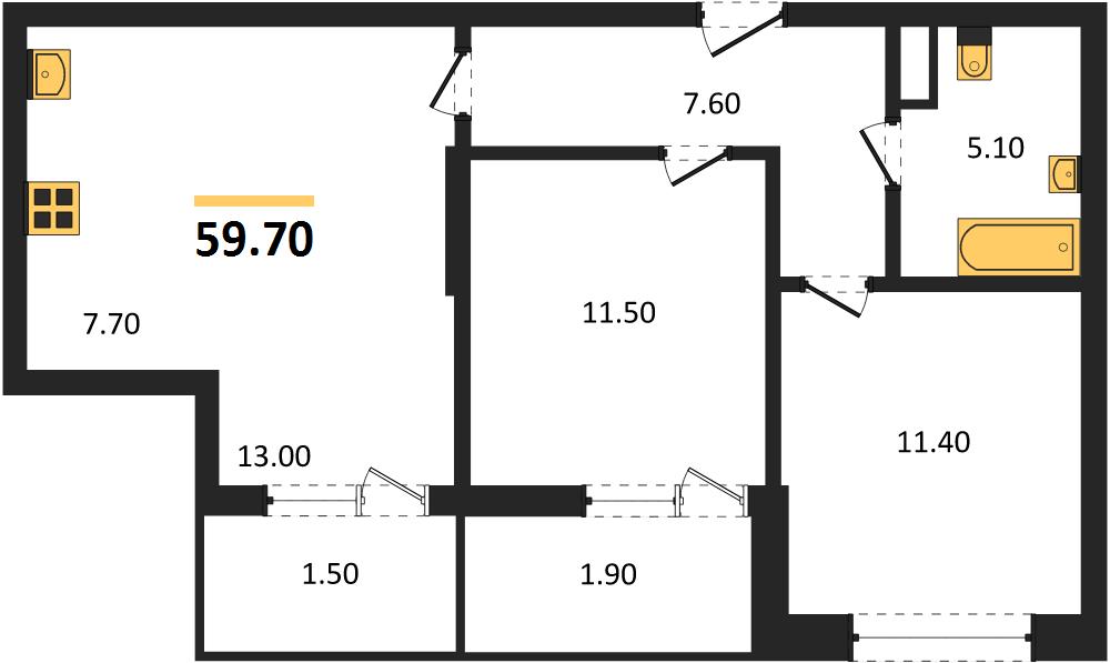 Квартира: 2 к 59,70 кв.м., 2 этаж в комплексе Хозяин Морей, 2 очередь, корп.2Б, сдача: 4кв. , этажей: 8, адрес Супсех село, д. литер 2Б, Застройщик: ТОЧНО.