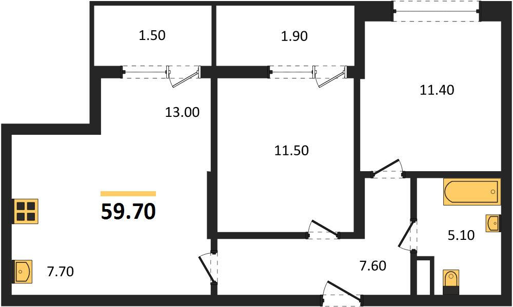 Квартира: 2 к 59,70 кв.м., 4 этаж в комплексе Хозяин Морей, 2 очередь, корп.2В, сдача: 4кв. , этажей: 8, адрес Супсех село, д. литер 2В, Застройщик: ТОЧНО.