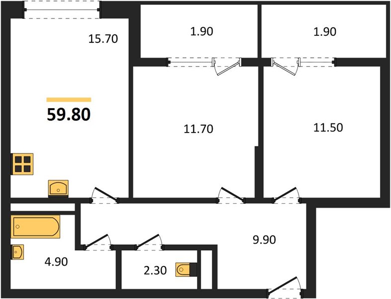 Квартира: 2 к 59,80 кв.м., 2 этаж в комплексе Хозяин Морей, 2 очередь, корп.2В, сдача: 4кв. , этажей: 8, адрес Супсех село, д. литер 2В, Застройщик: ТОЧНО.