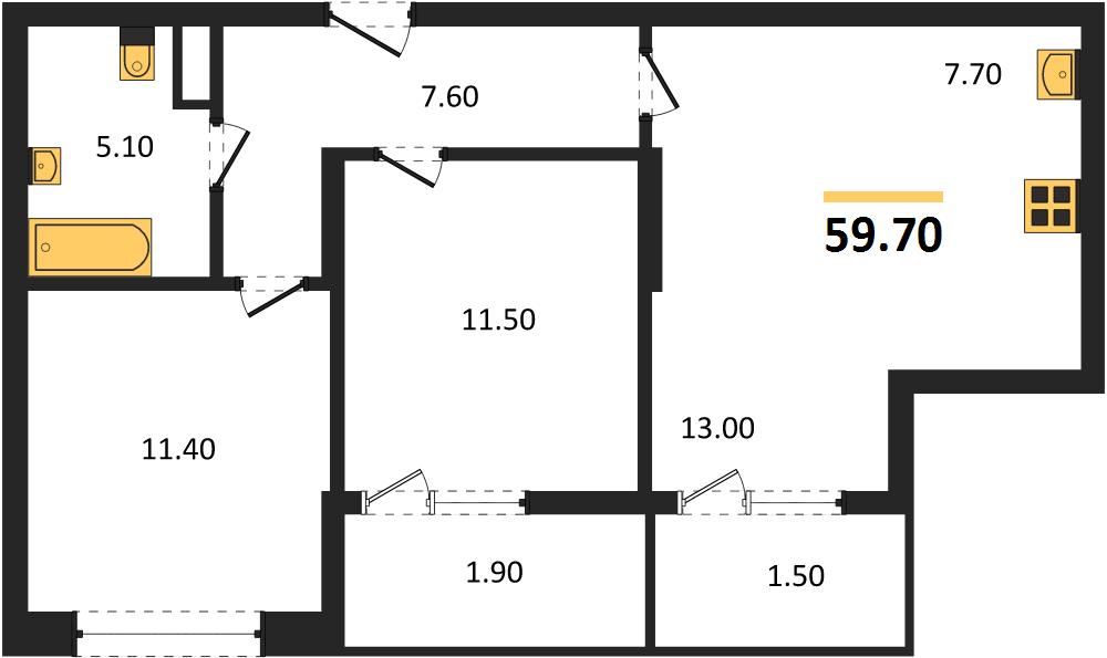 Квартира: 2 к 59,70 кв.м., 8 этаж в комплексе Хозяин Морей, 2 очередь, корп.2В, сдача: 4кв. , этажей: 8, адрес Супсех село, д. литер 2В, Застройщик: ТОЧНО.