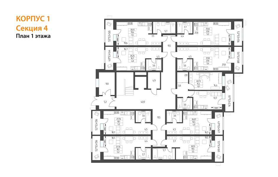 На 1-ом этаже жилых секций располагаются нежилые помещения и квартиры. Встроенные нежилые помещения предназначены для размещения офисов и магазина, имеют отдельные входы.