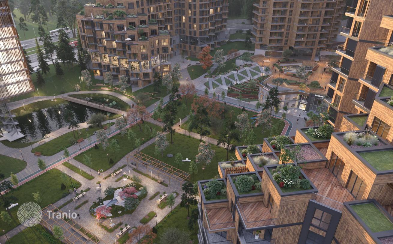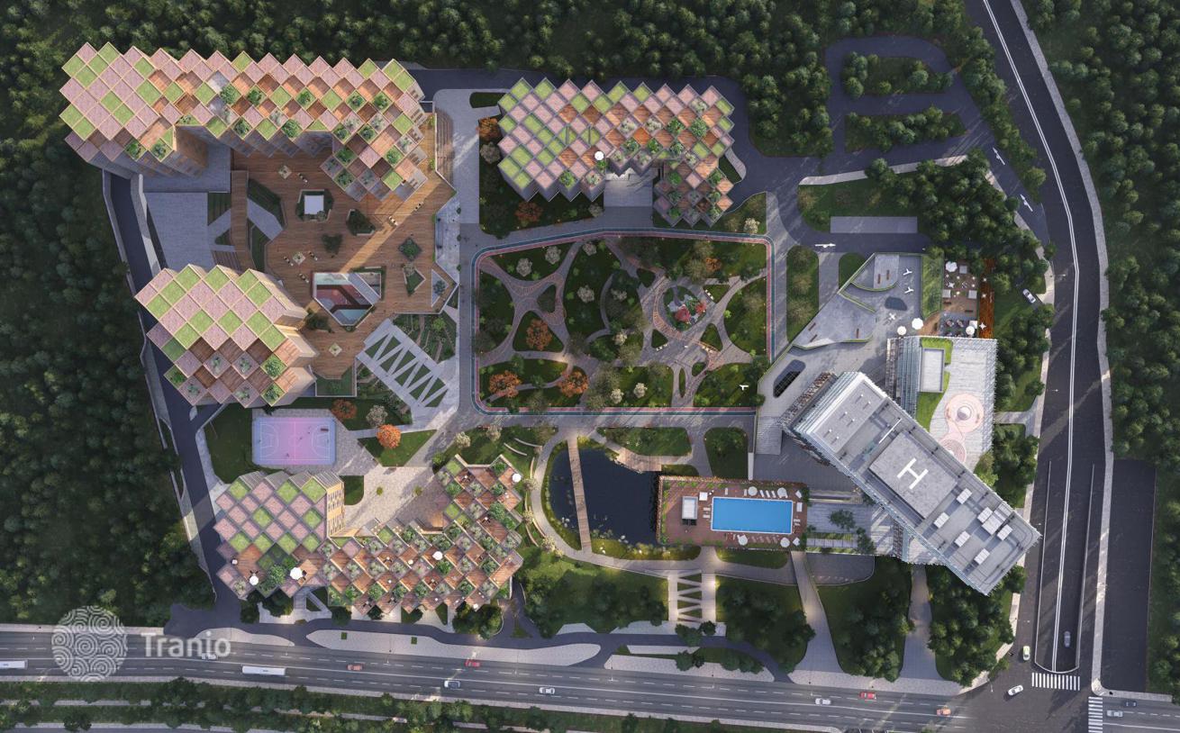 Рекреационная зона комплекса составляет 23 000 квадратных метров. Она создана путем ухода за существующими столетними деревьями и растениями и создания новых зеленых насаждений. Здесь вы найдете озеро, японский сад, водопад, детские и спортивные площадки. Во дворе не будет парковки для автомобилей, территория будет закрыта и охраняема. На территории планируется открытие кафе, баров, ресторанов, SPA-центра, бассейна, детского центра и других коммерческих объектов.