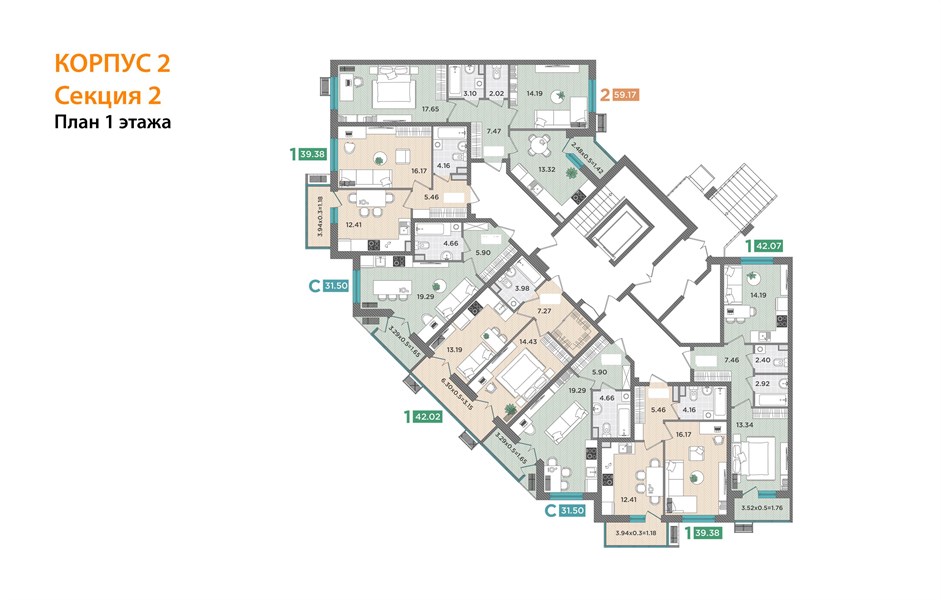 Квартира: 1 к 39,38 кв.м., 1 этаж в комплексе Сады у моря, 2 очередь, корп.2, сдача: 3кв. , этажей: 8, адрес Темрюк г., Дальняя ул., д. 30, Застройщик: ГК Каскад.