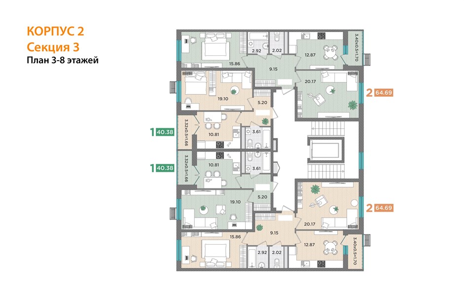 Квартира: 1 к 40,38 кв.м., 3 этаж в комплексе Сады у моря, 2 очередь, корп.2, сдача: 3кв. , этажей: 8, адрес Темрюк г., Дальняя ул., д. 30, Застройщик: ГК Каскад.