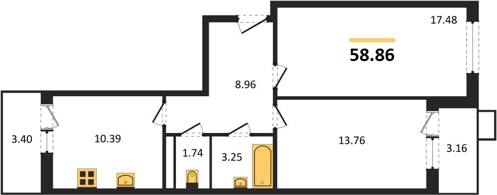 Квартира: 2 к 58,86 кв.м., 4 этаж в комплексе Сады у моря, 2 очередь, корп.2, сдача: 3кв. , этажей: 8, адрес Темрюк г., Дальняя ул., д. 30, Застройщик: ГК Каскад.