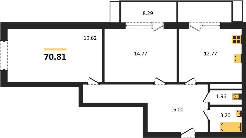 Квартира: 2 к 70,81 кв.м., 3 этаж в комплексе Сады у моря, 3 очередь, корп.3, сдача: 4кв. , этажей: 8, адрес Темрюк г., Дальняя ул., д. 30, Застройщик: ГК Каскад.