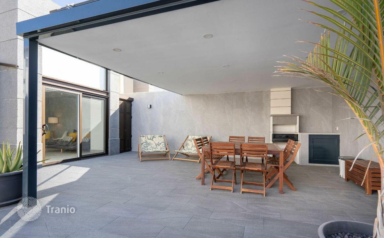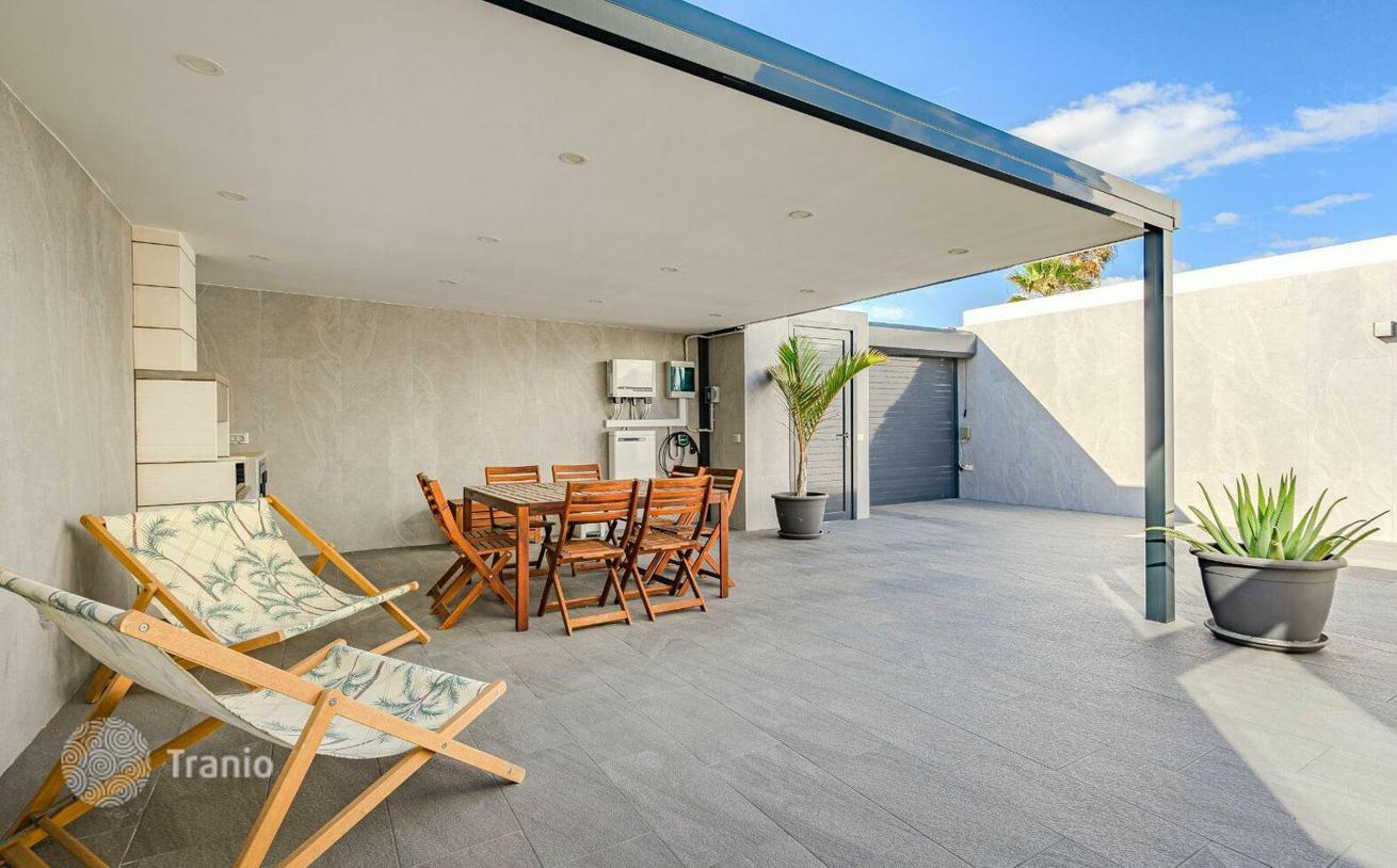Вилла полностью отремонтирована с использованием высококачественных материалов и современного дизайна, распределена на одном этаже, построена на участке площадью 250 м². В доме есть закрытый гараж на одну машину, часть этого пространства отведена под спортзал. Также имеется крытая открытая парковка с зарядной станцией для электромобиля. Беседка и зона барбекю, а также большая открытая площадка, которая окружает дом, обеспечивают полную приватность и защиту от ветра. Лестница открывает доступ к террасе на крыше с различными возможностями, так как с этого места открывается потрясающий вид на океан. Продается полностью меблированной.