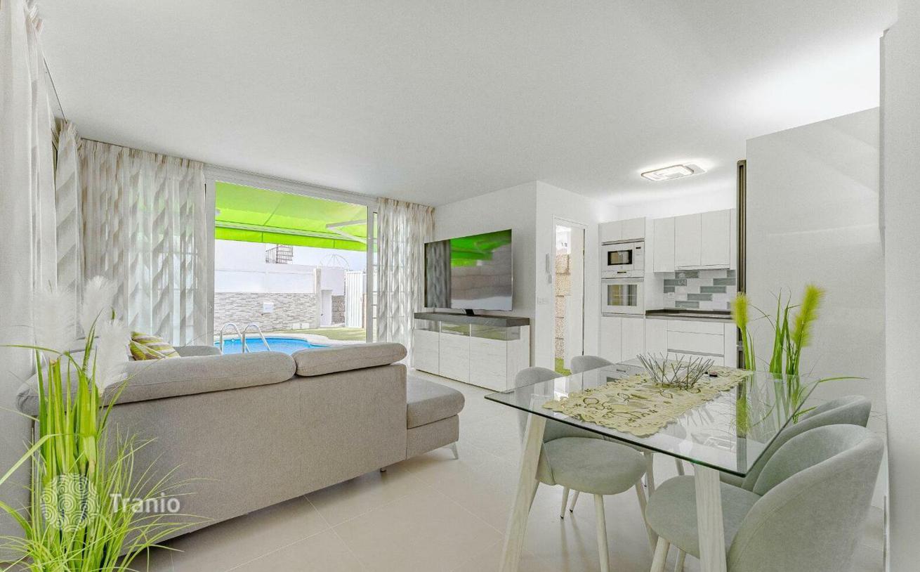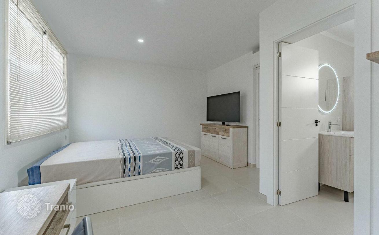 Вилла площадью 107 м² имеет 3 спальни и 2 полные ванные комнаты, а также гаражное место с автоматической дверью, бассейн с подогревом и автоматикой. Кухня, оснащенная высококачественной техникой, и гостиная сообщаются с внешним пространством, создавая уникальную атмосферу.