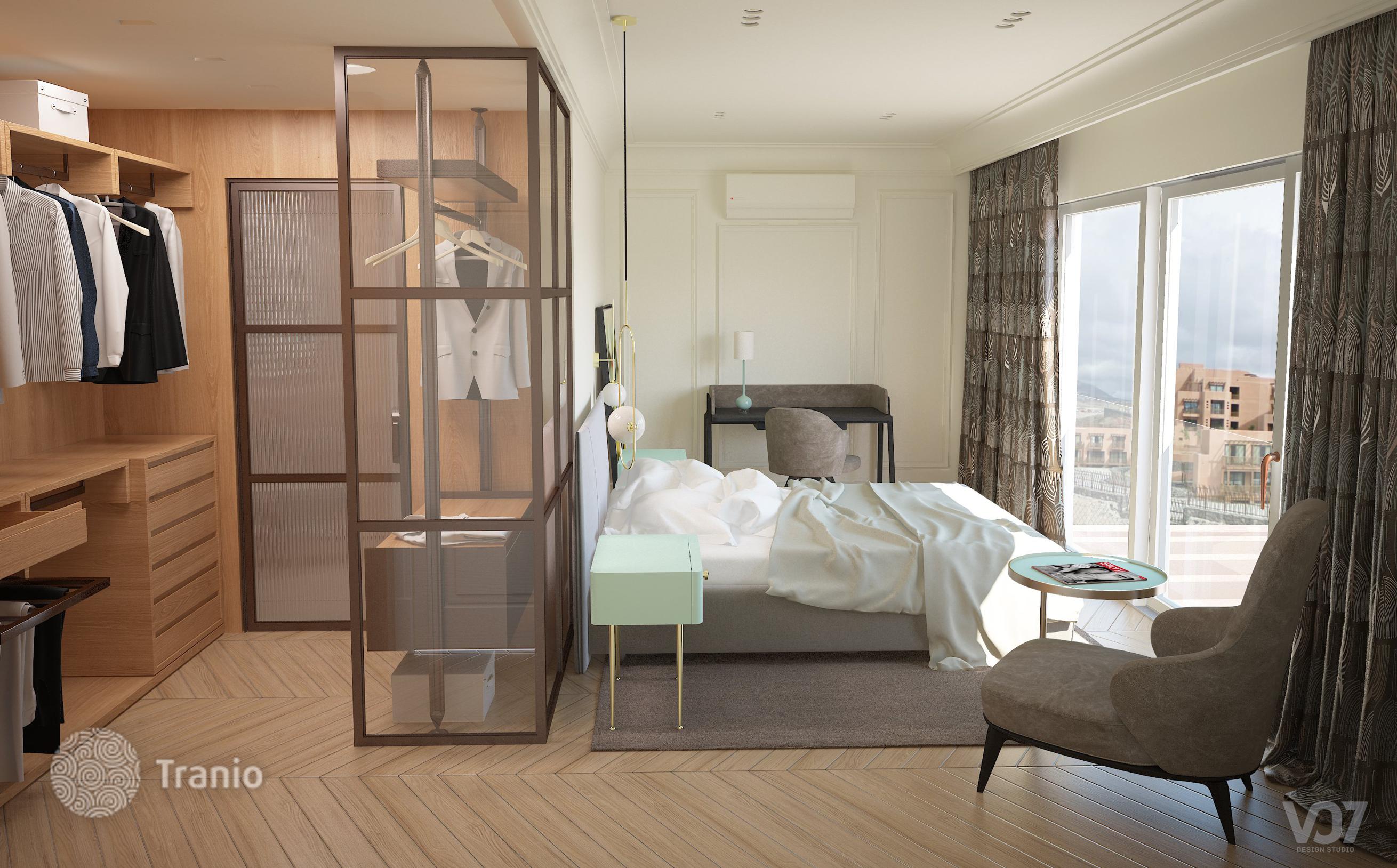 Второй этаж: три спальни (одна спальня с собственной гардеробной и ванной комнатой, одна двухместная спальня и одна одноместная спальня с общей ванной комнатой).