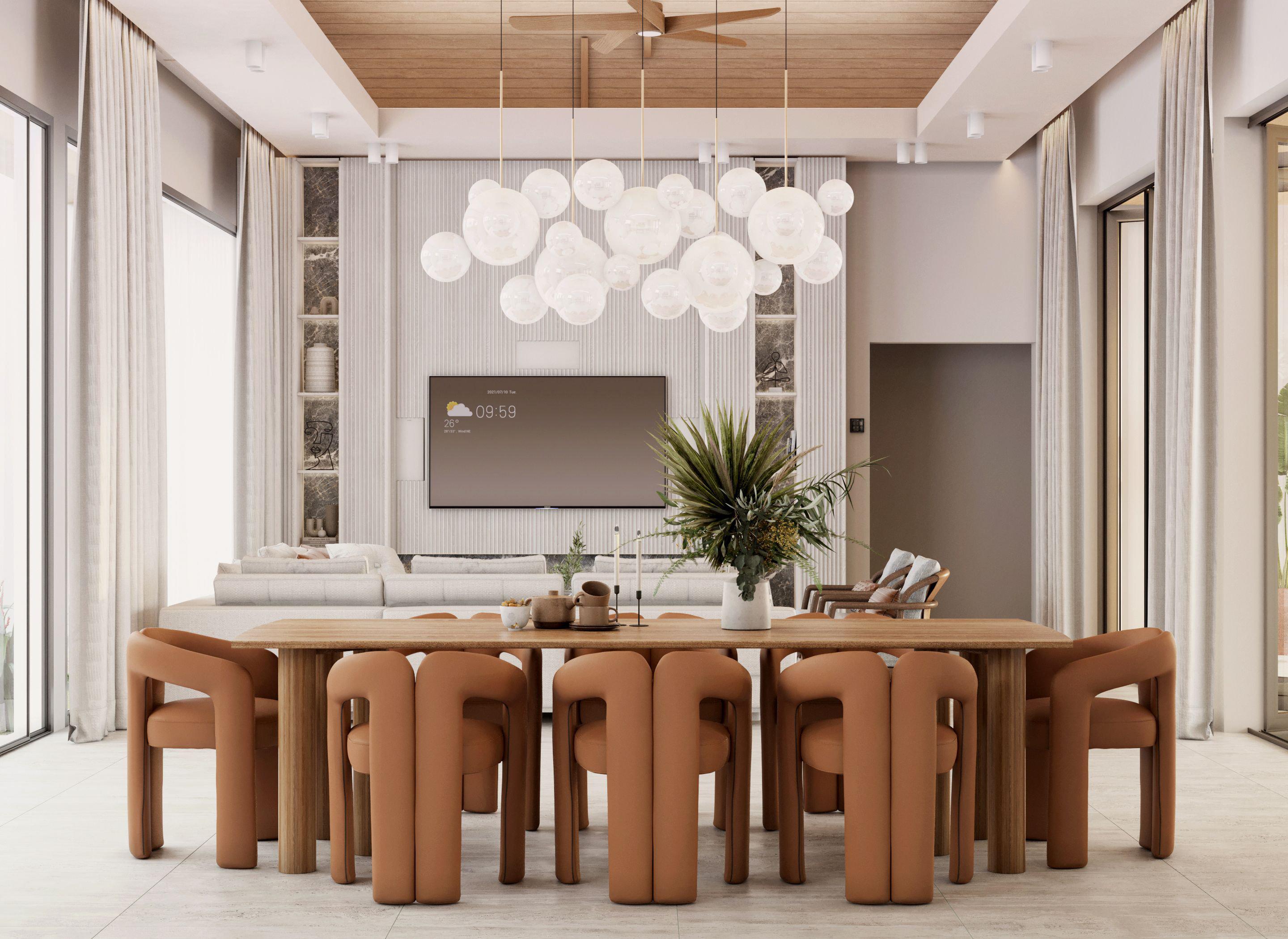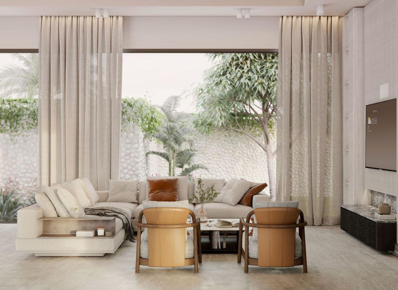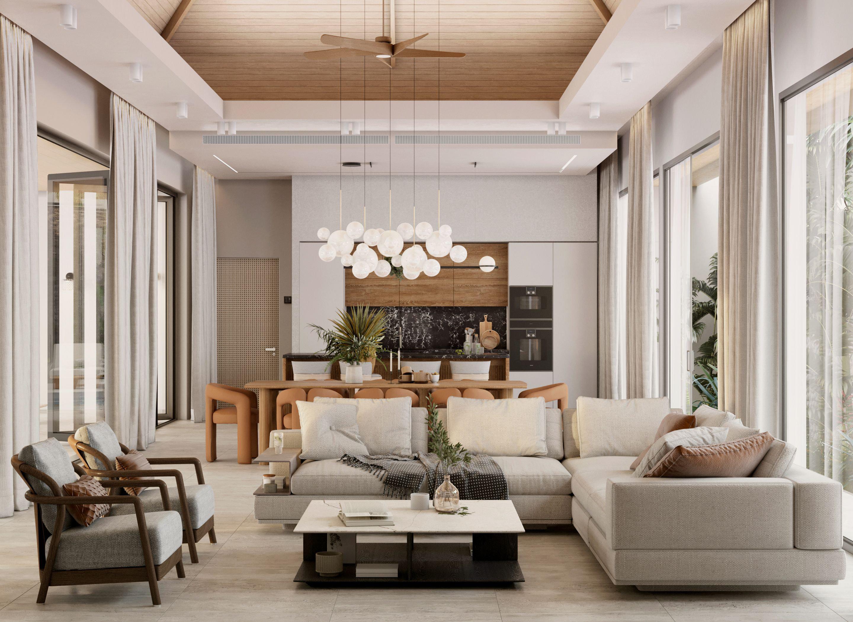 Каждый дом включает гостиную с обеденной зоной, кухню в стиле open-plan с выходом в сад и бассейн, прачечную, кладовую, спальни с ванными комнатами и гардеробными.