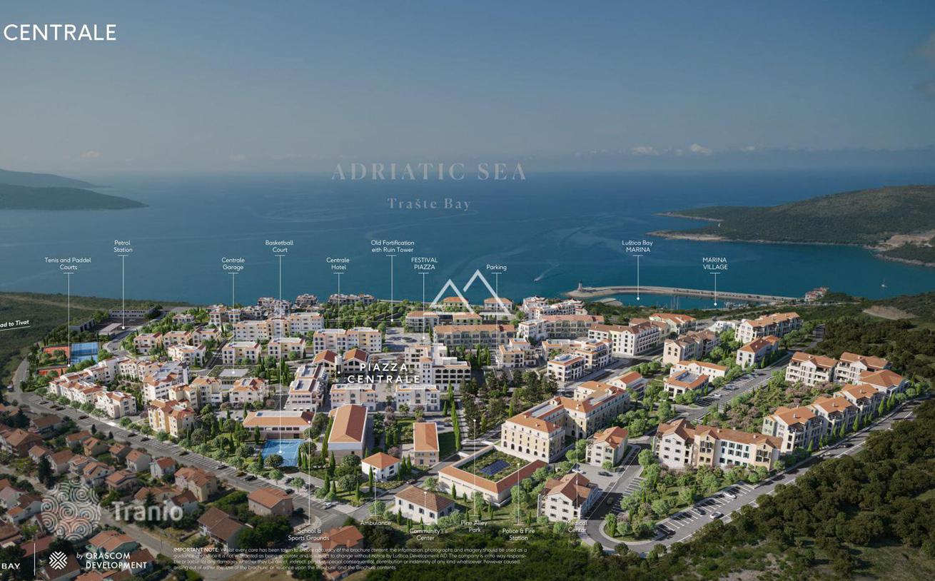 Двухкомнатная квартира в новой фазе Centrale Lustica Bay! Лучшее ценовое предложение на сегодняшний день в Lustica Bay 61 м² — 322 500 евро! Не пропустите! Самые выгодные условия сделки! 1. Первый взнос- всего 25%! 2. Остальная сумма выплачивается с беспроцентной рассрочкой на 4 года. 3. По окончанию строительства Вы получите готовую квартиру в чистовой отделке, в которую входит: встроенная кухня с бытовой техникой, сантехника, теплые полы в ванных комнатах. Двухкомнатная квартира (61 м²) расположена в новом 14 блоке квартала Centrale. Очень удачная планировка-квартира состоит из коридора, ванной комнаты, спальни и с другой стороны -гостиной, совмещенной с кухней с выходом на террасу. Квартира продается в чистовой отделке со встроенной кухней и сантехникой. Lustica Bay — полноценный городок с собственным пляжем в красивейшем месте Черногории — на полуострове Луштица! Рядом уже построена площадь Piazza, которая будет представлять собой настоящий новый центр города и станет отличным связующим звеном между Marina Village и полем для гольфа Gary Player. Открыты спортивные площадки для тенниса, баскетбола и мини-футбола, обустроен зеленый парк, детская игровая зона, фитнес-зона. Новый район Centrale станет центром Luštica Bay и динамичным жилым кварталом. Благодаря центральному расположению, обилию зелени и продуманной планировке данный район станет идеальным выбором для тех, кому нужен комфорт и уединение, но кто при этом желает сохранить возможность пользоваться преимуществами городского стиля жизни. Centrale будет включать множество общественных зон, которые станут основой социальной жизни города и местом для неофициальных встреч и мероприятий. В Centrale предусмотрено свыше 20 000 м² общественной и развлекательной инфраструктуры и 95 000 м² жилых помещений. Пространство в Centrale спланировано так, чтобы минимизировать автомобильное движение – за счет разветвленной сети тротуаров и пешеходных зон, велосипедных дорожек и станций парковки велосипедов и электрических видов транспорта. Улицы будут отданы в распоряжение пешеходов, поскольку движение транспорта на них ограничено. Centrale будет максимально интегрирован в инфраструктуру и транспортную сеть всего проекта Luštica Bay, включая поля для гольфа, марину для яхт и пляжи, а также окружающие населенные пункты. Находясь на расстоянии всего 10 минут езды на автомобиле от аэропорта Тиват, Centrale является легко доступным из целого ряда европейских городов…