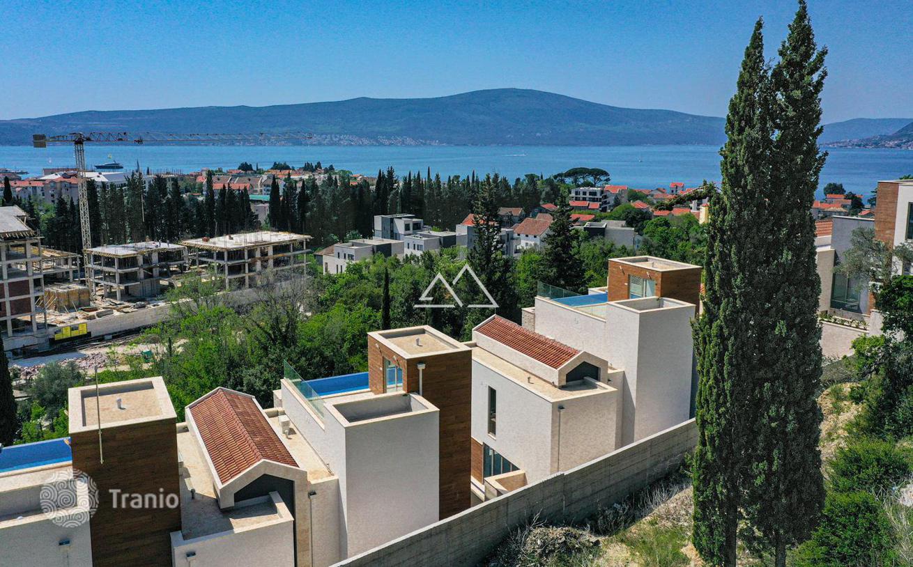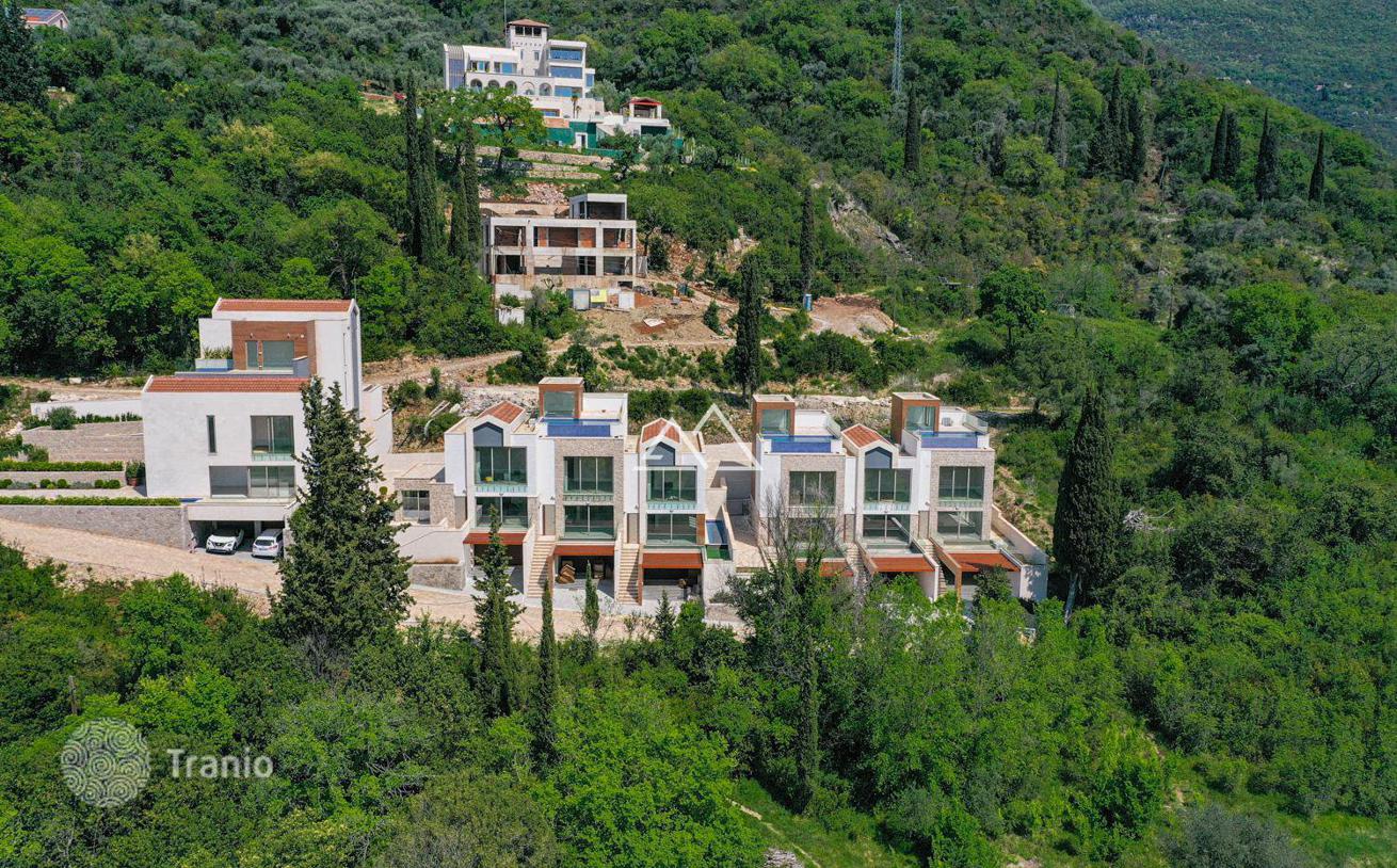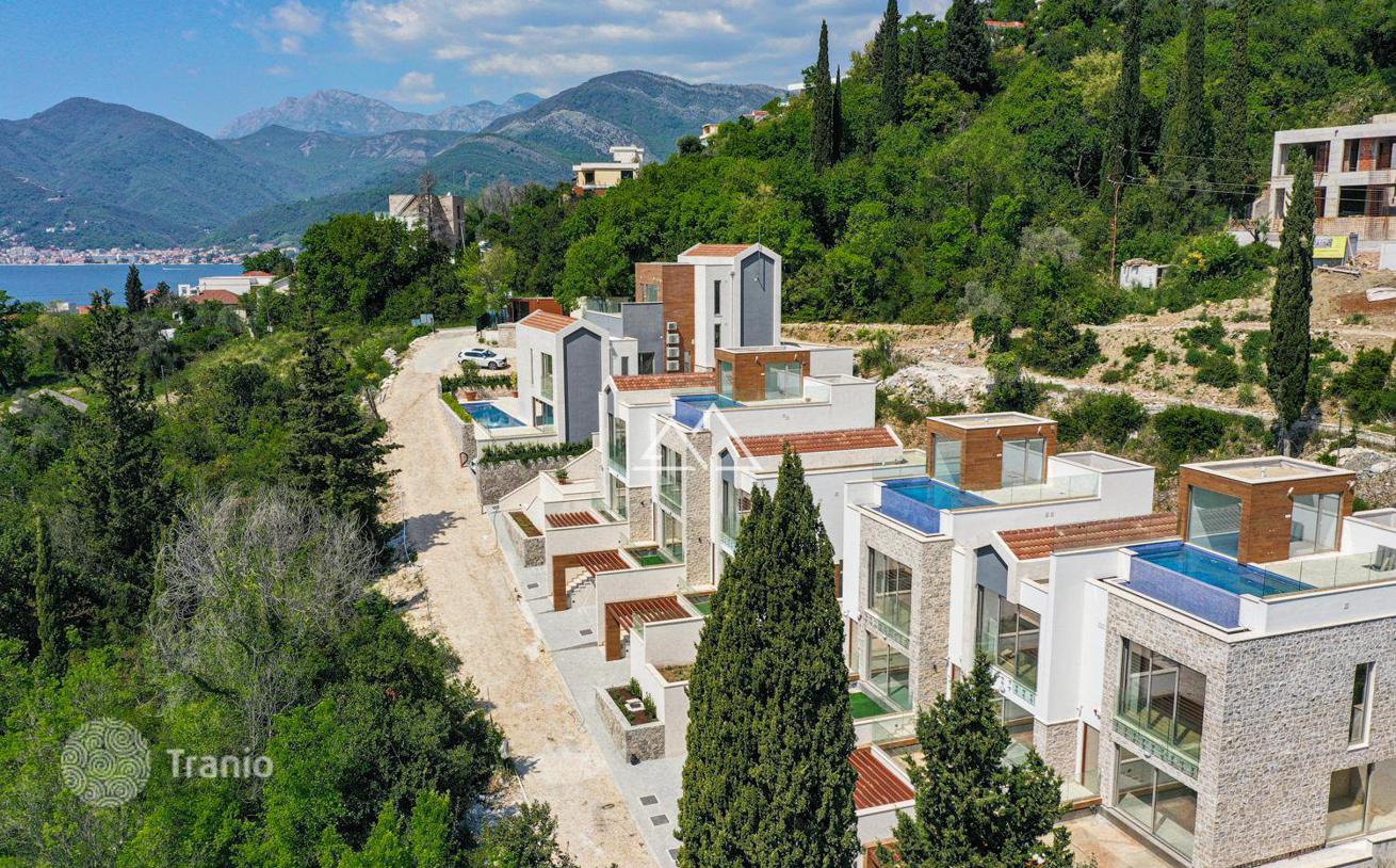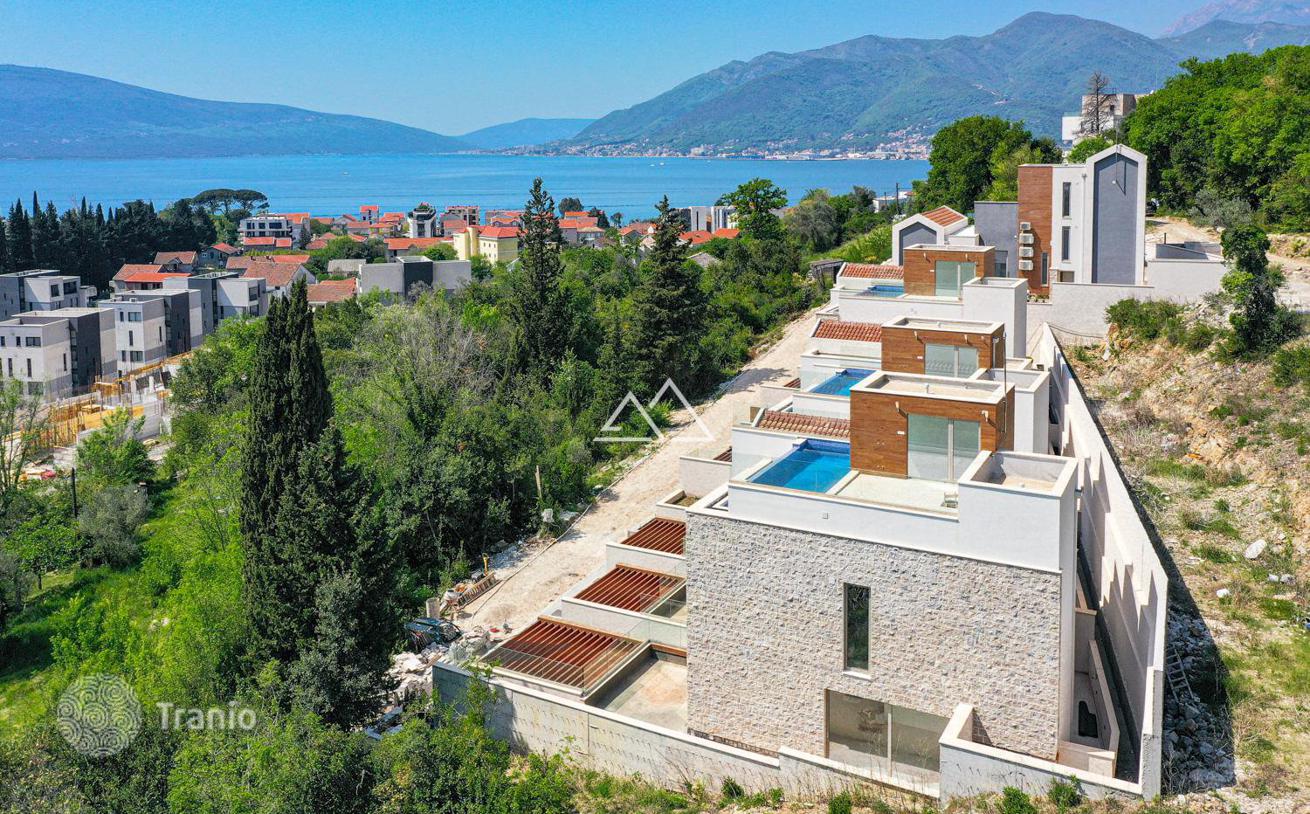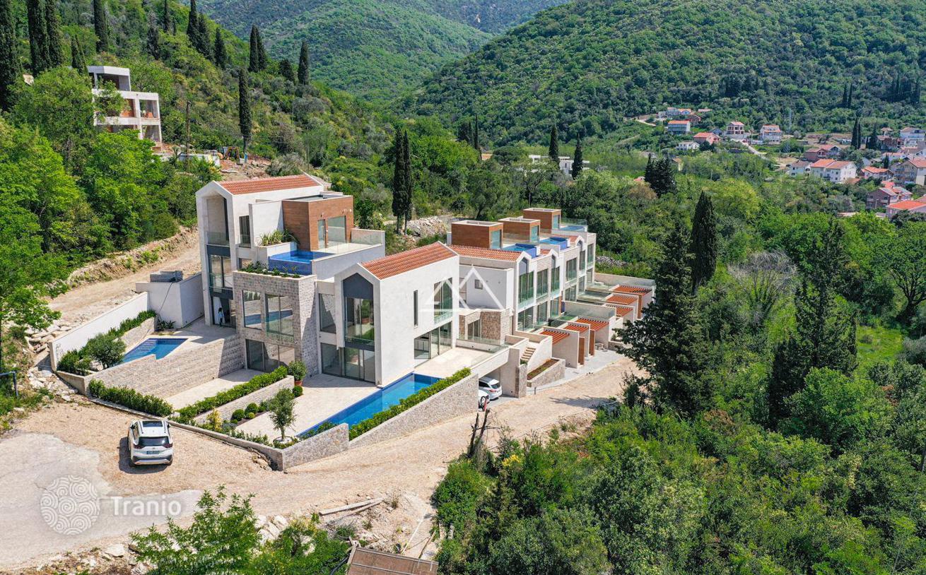 Новый закрытый жилой комплекс премиум класса в новом районе Тивата. Комплекс расположен на небольшом возвышении в окружении зелени рядом со всей городской инфраструктурой. Расстояние до моря составляет 400 м. Из панорамных окон открываются потрясающие виды на море, горы, Тиват и Porto-Montenegro. Отличительной чертой проекта являются наличие гардеробных и кладовых для хранения вещей, а также наличие собственного гаража. В первой линии комплекса построены и готовы для заселения 9 таунхаусов. Каждый из них имеет собственную прилегающую территорию, гараж, площадку для барбекю и просторные зелёные террасы. В таунхаусах предусмотрено 2 варианта размещения бассейнов: на видовой террасе на крыше или на прилегающей территории. В этом заключаются архитектурные особенности строений и планировок. Таунхаусы продаются в чистовой отделке премиум класса с использованием натуральных материалов, таких как природный камень и дерево, укомплектованы Vileroy Boch сантехникой и системой климатизации Daikin. Предусмотрены отдельные гардеробные комнаты и кладовые для хранения вещей, подогрев пола, система «умный дом». Также в проекте на продажу имеются пентхаусы и дуплексы с 2 и 3 спальнями. Эксклюзивный двухуровневый пентхаус расположен в самой высокой точке комплекса и имеет собственную прилегающую территорию, на которой размещены бассейн, площадка для барбекью и просторная терраса, 2 места в подземном паркинге, лифт. Панорамный вид открывается с каждого уровня пентхауса, а также с бассейна. Управляющая компания обеспечит круглосуточное обслуживание комплекса и инфраструктуры, самые надёжные системы безопасности и видеонаблюдение…