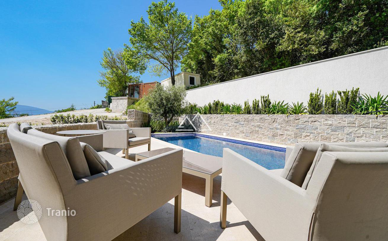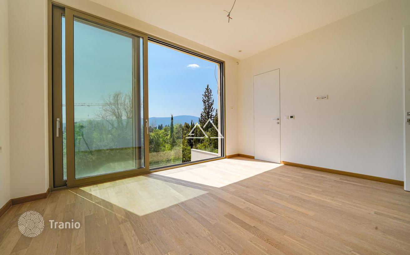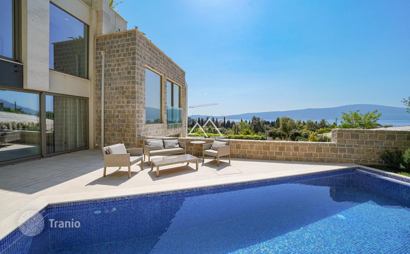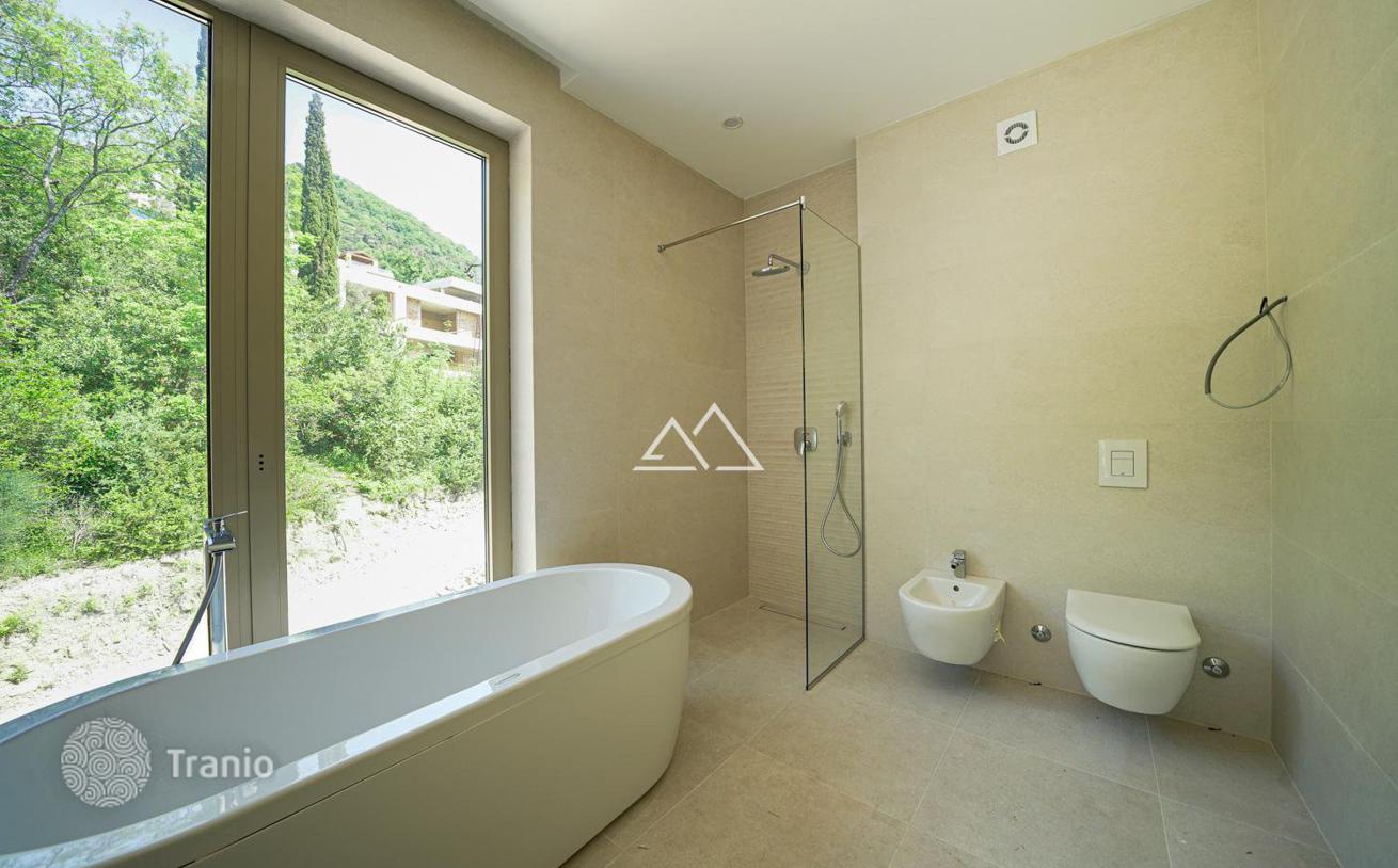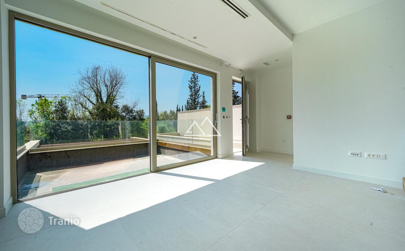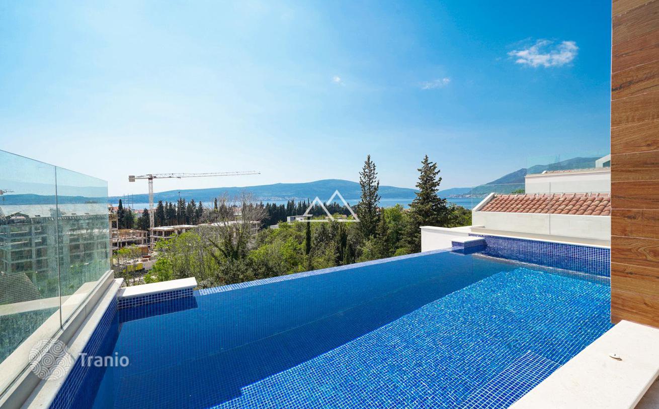 Новый закрытый жилой комплекс премиум класса в новом районе Тивата. Комплекс расположен на небольшом возвышении в окружении зелени рядом со всей городской инфраструктурой. Расстояние до моря составляет 400 м. Из панорамных окон открываются потрясающие виды на море, горы, Тиват и Porto-Montenegro. Отличительной чертой проекта являются наличие гардеробных и кладовых для хранения вещей, а также наличие собственного гаража. В первой линии комплекса построены и готовы для заселения 9 таунхаусов. Каждый из них имеет собственную прилегающую территорию, гараж, площадку для барбекю и просторные зелёные террасы. В таунхаусах предусмотрено 2 варианта размещения бассейнов: на видовой террасе на крыше или на прилегающей территории. В этом заключаются архитектурные особенности строений и планировок. Таунхаусы продаются в чистовой отделке премиум класса с использованием натуральных материалов, таких как природный камень и дерево, укомплектованы Vileroy Boch сантехникой и системой климатизации Daikin. Предусмотрены отдельные гардеробные комнаты и кладовые для хранения вещей, подогрев пола, система «умный дом». Также в проекте на продажу имеются пентхаусы и дуплексы с 2 и 3 спальнями. Эксклюзивный двухуровневый пентхаус расположен в самой высокой точке комплекса и имеет собственную прилегающую территорию, на которой размещены бассейн, площадка для барбекью и просторная терраса, 2 места в подземном паркинге, лифт. Панорамный вид открывается с каждого уровня пентхауса, а также с бассейна. Управляющая компания обеспечит круглосуточное обслуживание комплекса и инфраструктуры, самые надёжные системы безопасности и видеонаблюдение…