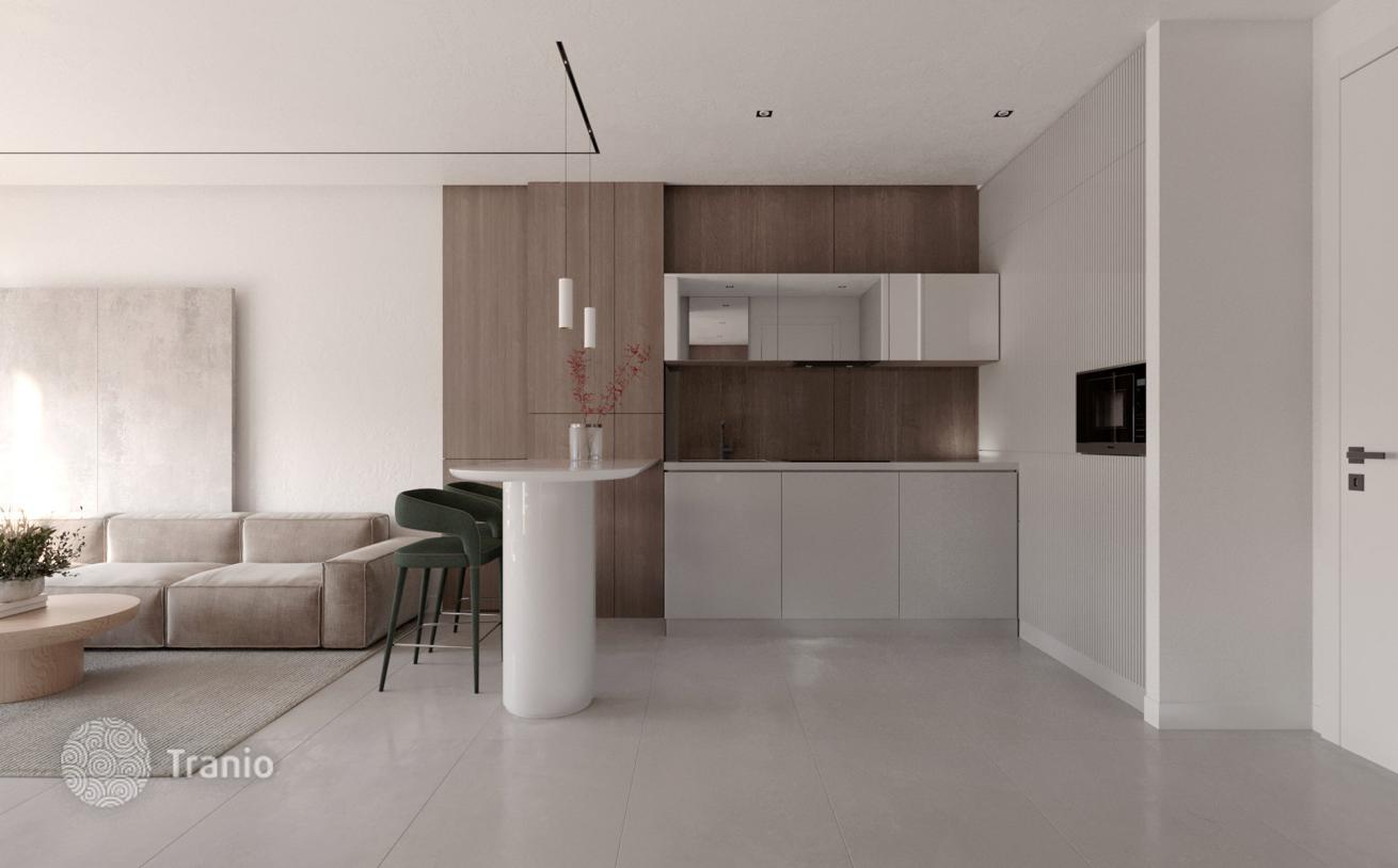 Материалы премиум-класса и современное оборудование: лучшие породы натурального дерева, изысканная отделка из камня, новейшие системы климат-контроля WINDFREE от Samsung, системы «умный дом» Legrand и престижные бренды сантехнического оборудования, такие как Villeroy & Boch, Kartell, LAUFEN и Dornbracht.