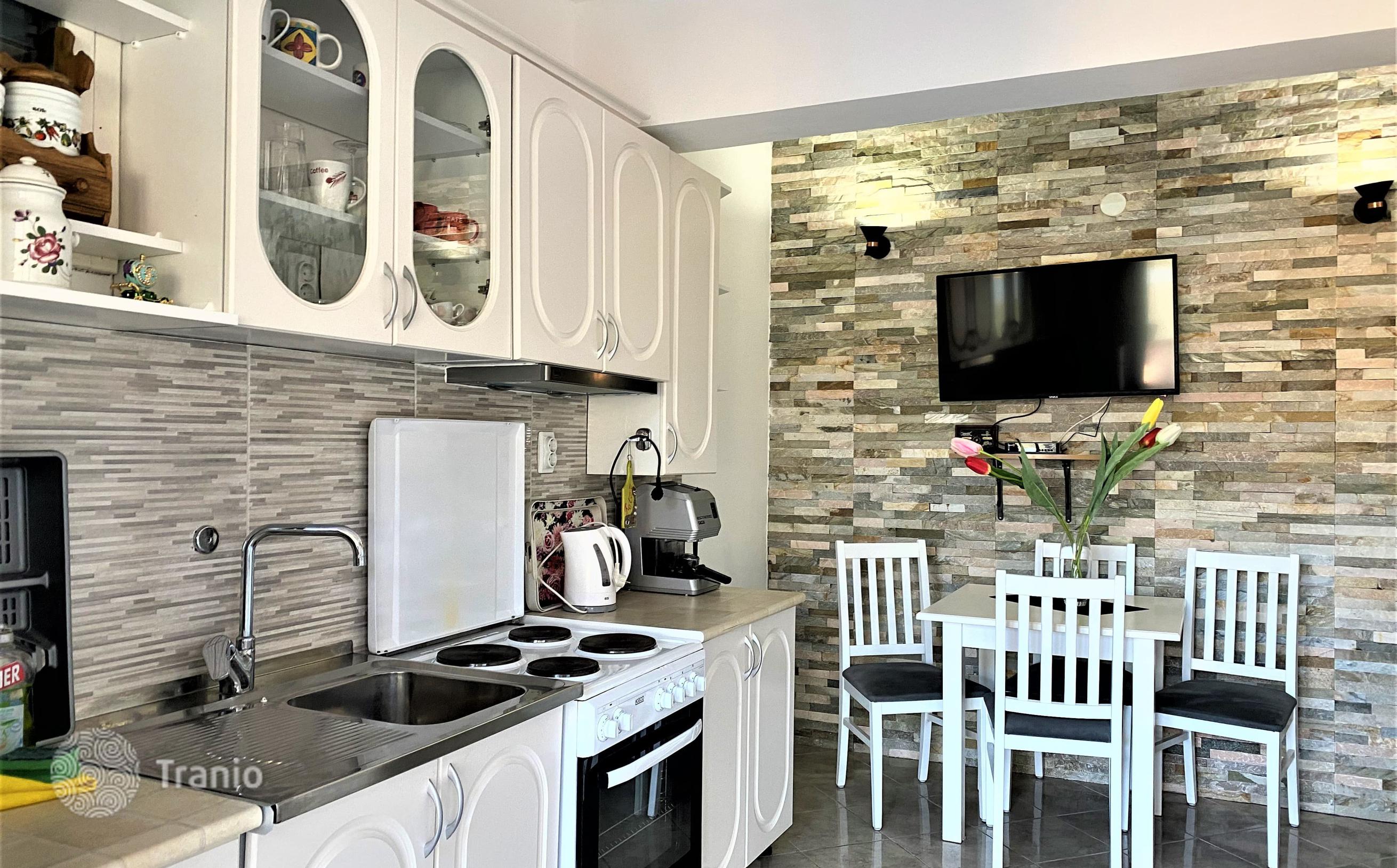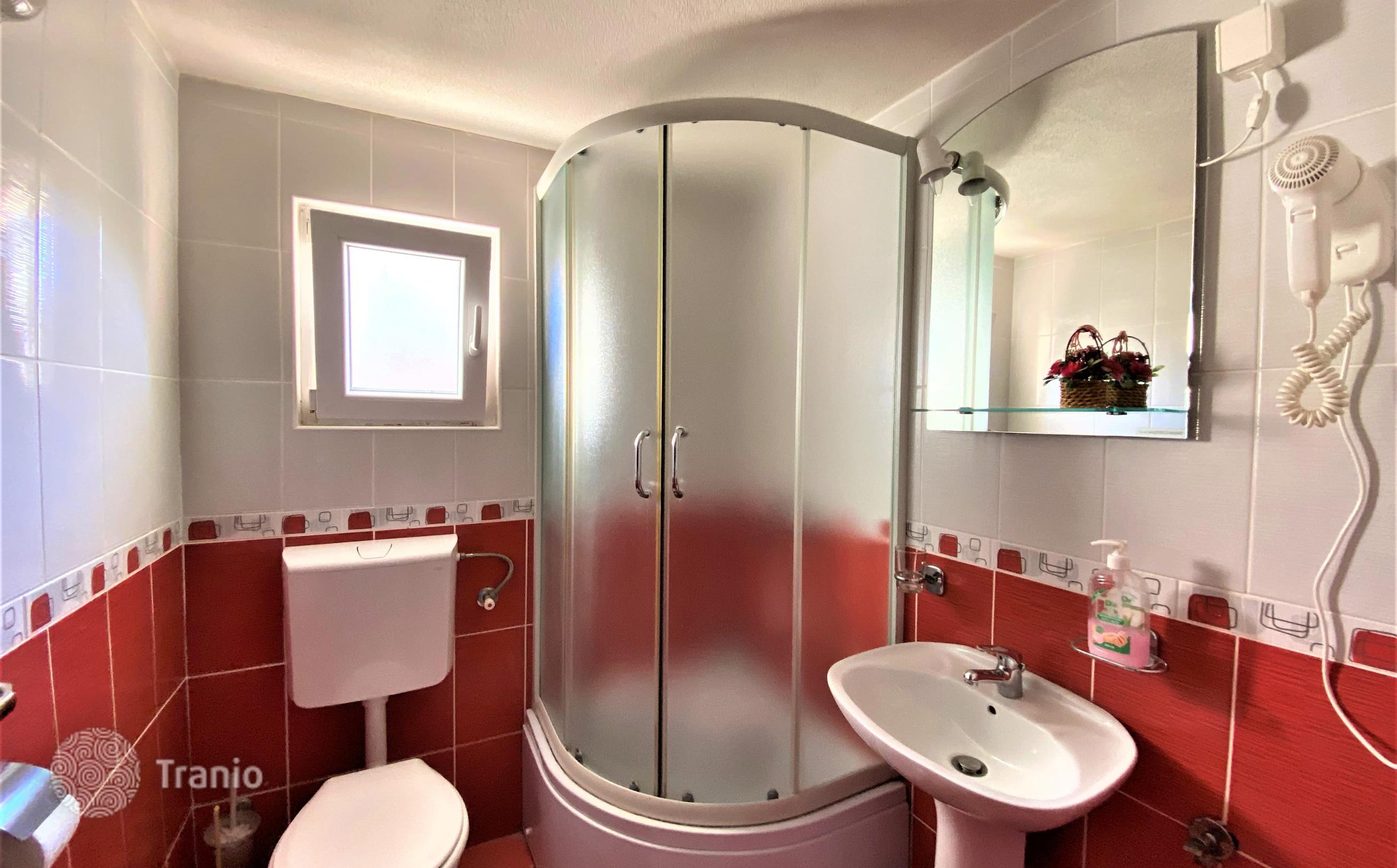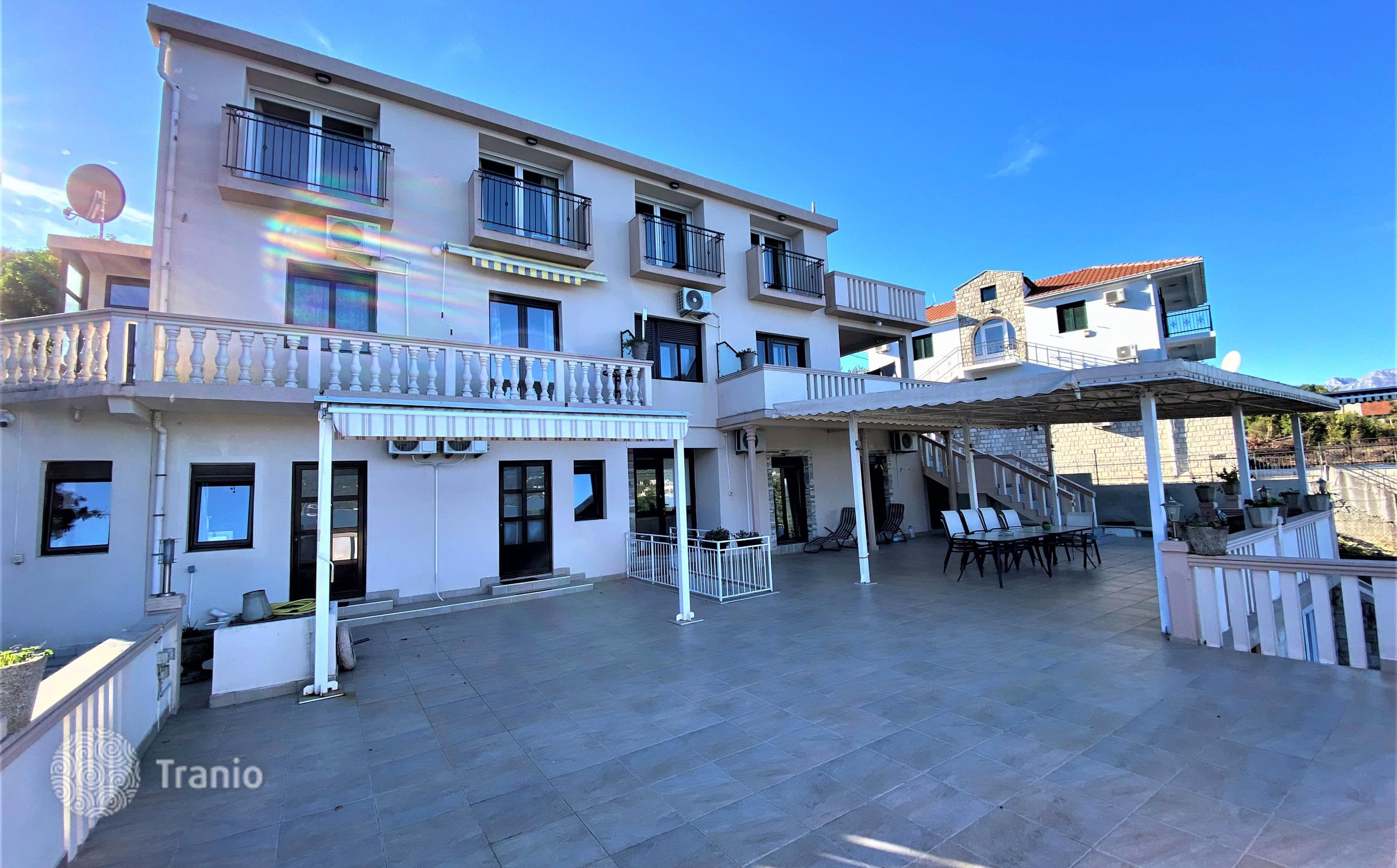 Дом представляет собой уникальную инвестиционную возможность. Он расположен на первой линии моря на полуострове Луштица и имеет право на использование понтона площадью 400 м² с полной пляжной мебелью, которая включена в стоимость. В доме 4 квартиры-студии и 4 однокомнатные квартиры. Все апартаменты имеют террасу и беспрепятственный вид на море. В доме четыре этажа. Подвал, цокольный этаж, первый этаж и второй этаж. В цокольном этаже расположены два гаража 20 и 24 м², прачечная и помещения для сотрудников. На первом этаже расположены две однокомнатные квартиры с прямым выходом на большую террасу. Квартиры состоят из небольшой гостиной с кухней, прихожей и одной спальни. Одна квартира имеет 38 м², а другая 41 м². На первом этаже две квартиры. Одна квартира состоит из большой гостиной, отдельной столовой с кухней, спальни и ванной комнаты. Эта квартира продается без мебели и имеет общую площадь 85 м². Вторая квартира состоит из небольшой гостиной с кухней, одной спальни и ванной комнаты. Он также продается без мебели и имеет площадь 36 м². На втором этаже расположены 4 квартиры-студии с галереями. Перед домом есть парковка на 10 автомобилей.