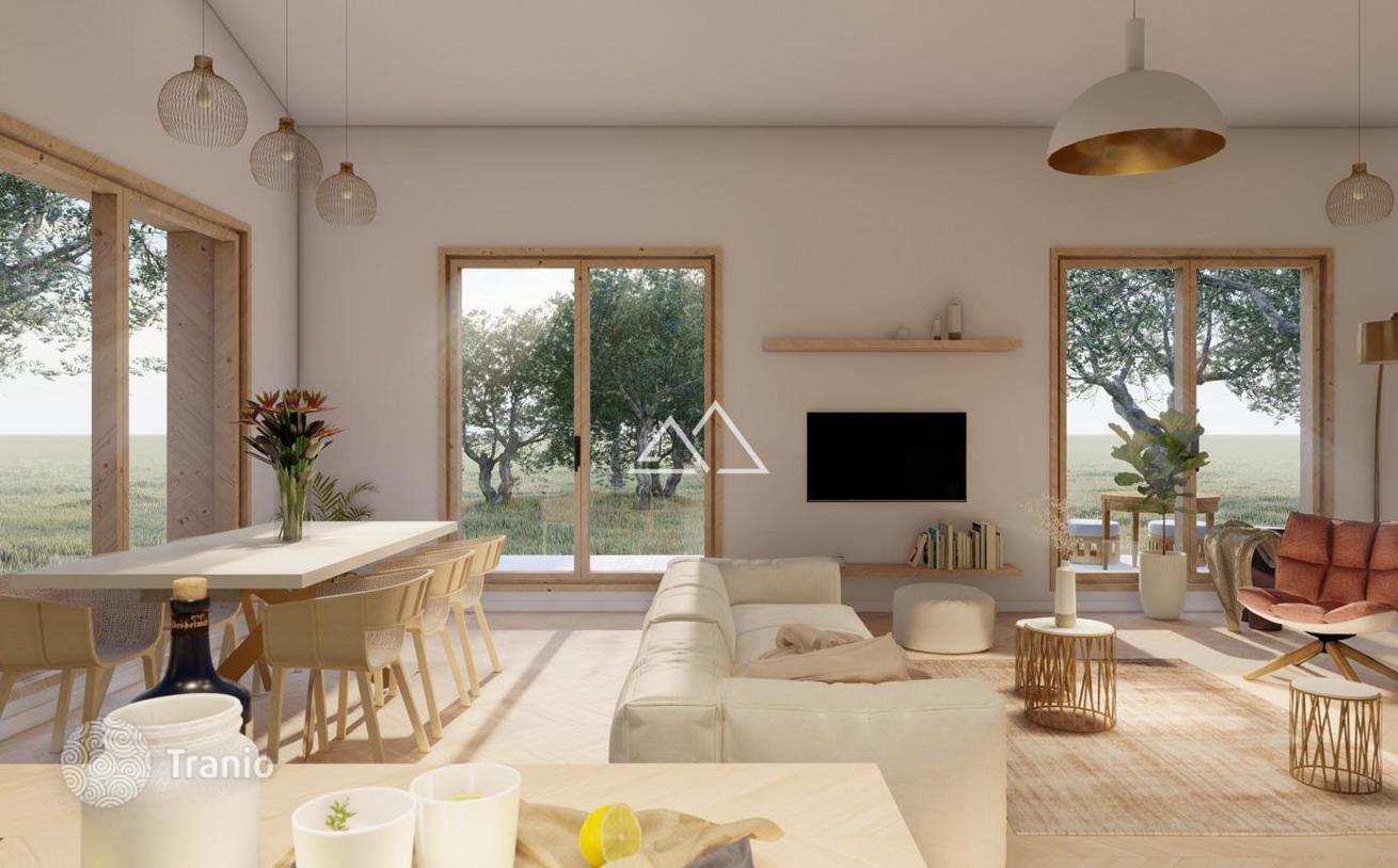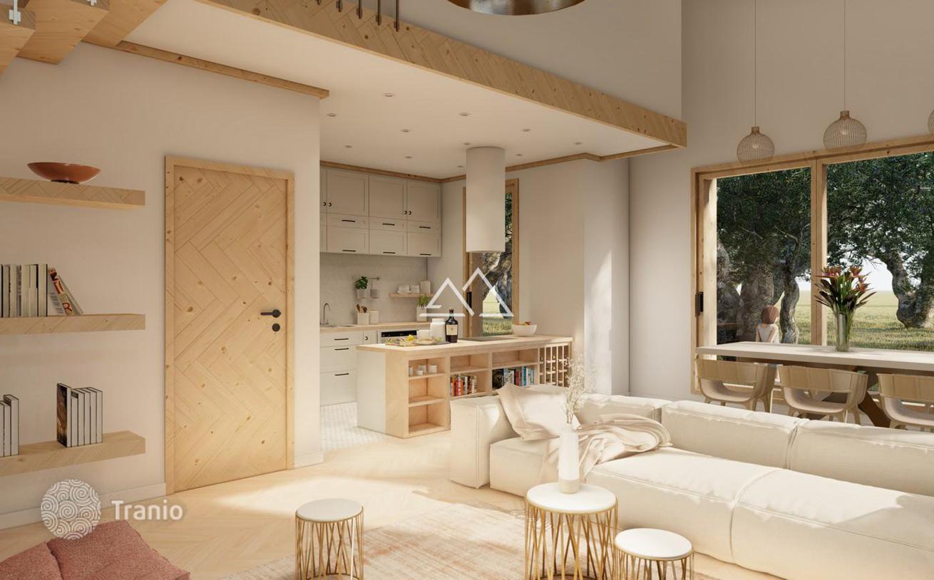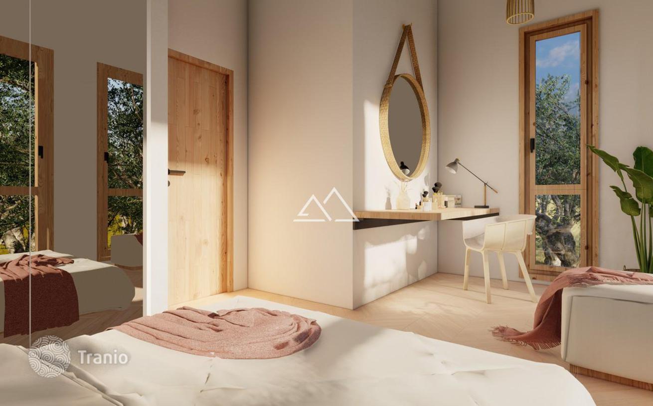 Новый дом (№7) с 3 спальнями в коттеджном поселке в пригороде Тивата. Коттеджный поселок расположен в поселке Кавач и состоит из 16 небольших домов с бассейнами. Это идеальное место для тех, кто ищет семейный дом в стороне от шума, но при этом в 10 минутах езды от Тивата, английской школы Arcadia и проекта Lustica Bay. Площадь дома 120 м². Земельный участок — 500 м². 3 спальни 2 ванные комнаты Зона для отдыха и сад Бассейн 12*4 Паркинг. Дом будет построен в медитеранском стиле с большими панорамными окнами в чистовой отделке со встроенной сантехникой. Очень функциональная планировка: На 1 этаже расположена просторная светлая гостиная, совмещенная с кухней и столовой зоной с выходом на террасу, гостевой туалет, спальня с собственной ванной комнатой. На 2 этаже расположены 2 спальни, каждая из которых имеет собственную ванную комнату и гардеробную. Большая площадь остекления панорамными окнами позволяет наполнить внутреннее пространство естественным светом и получить потрясающий вид на море и оливковые рощи. Начало строительства-лето 2024 г. Кавач является одним из популярных районов для инвестиций в дома и апартаменты с отельным обслуживанием в новых проектах. Этот район застраивается новыми жилыми комплексами с собственной инфраструктурой с ресторанами, SPA и другими услугами…