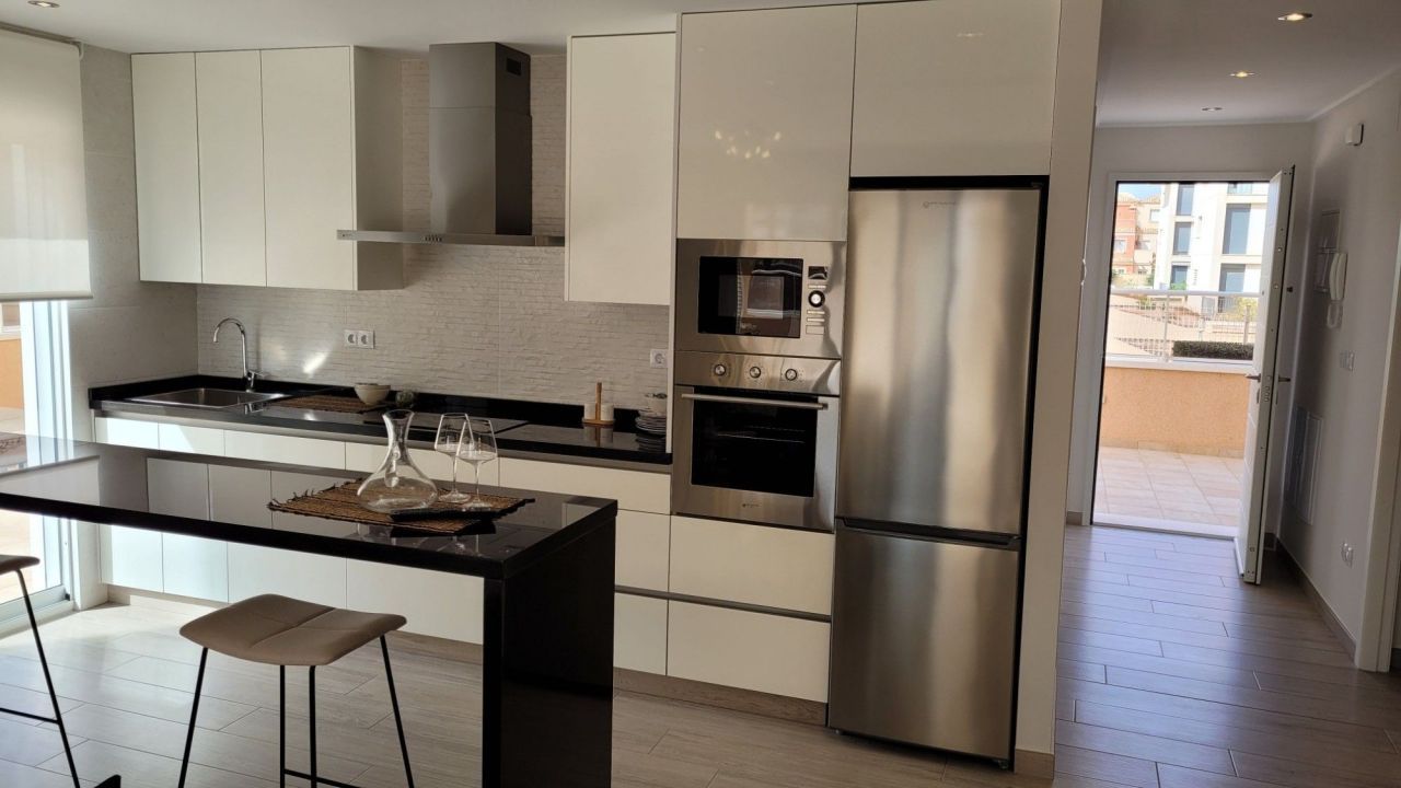• Предварительная установка непрямого освещения на террасах• Встроенные шкафы с полками и ящиками в спальнях• Кухня и ванная комната выложены плиткой до потолка• Предварительная установка кондиционера в гостиной и спальнях• Кухонная техника в комплекте: керамическая плита, вытяжка, стиральная машина, посудомоечная машина, духовка, микроволновая печь и холодильник.• Душевые экраны из стекла• Подогрев пола• Термостатический душ
