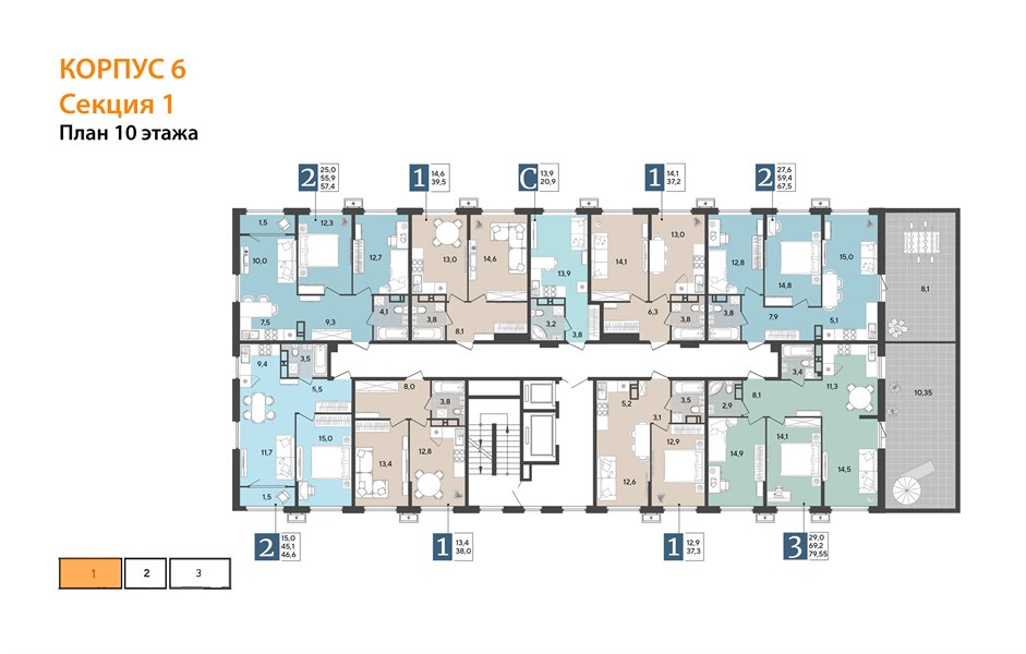 На десятых этажах домов будут квартиры с террасами. Отсюда открываются потрясающие панорамные виды на окружающие квартал горы.