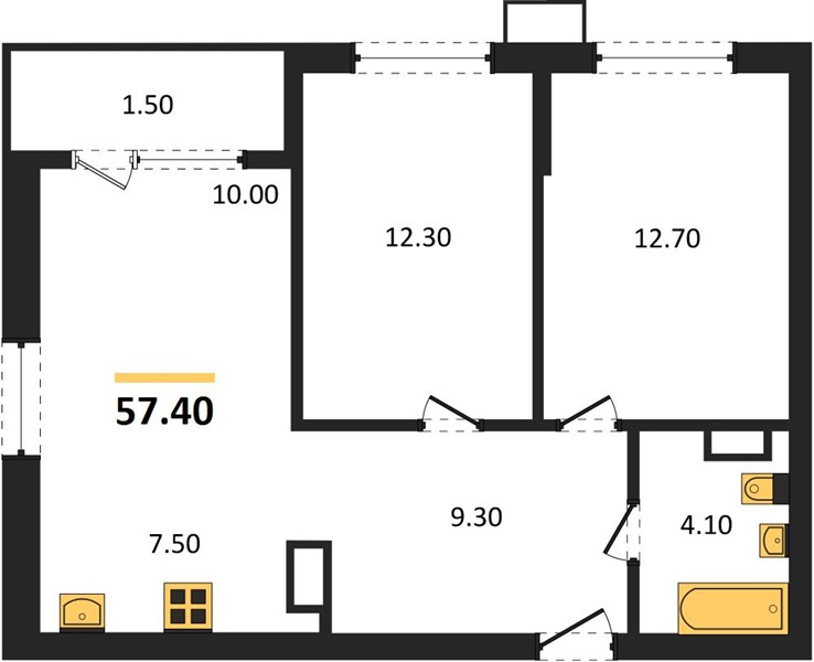 Квартира: 2 к 57,40 кв.м., 10 этаж в комплексе Порто-Ново, 1 очередь, корп.6, сдача: 4кв. , этажей: 18, адрес Цемдолина село, , Застройщик: ГК Догма.