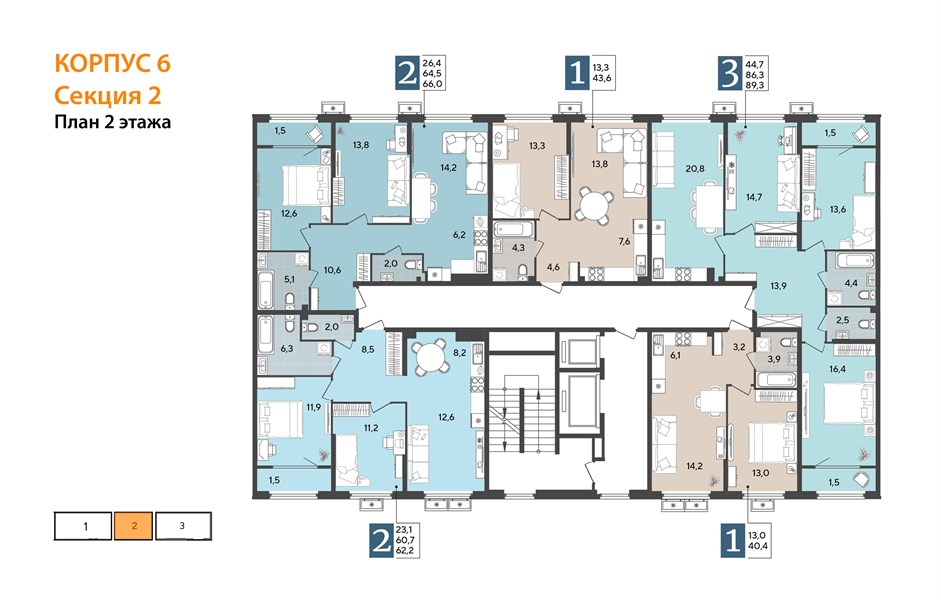 Дома в квартале будут переменной этажности — так в комнаты попадёт больше естественного света. Чтобы было удобно родителям с детьми, велосипедистам и пожилым людям, подъезды мы сделаем сквозными, входы — на уровне земли, а в лобби добавим место для хранения колясок.