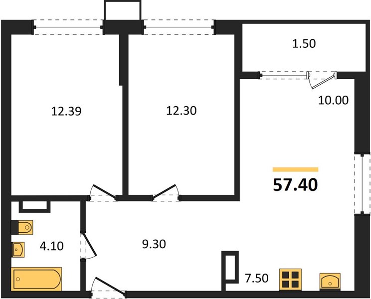 Квартира: 2 к 57,40 кв.м., 16 этаж в комплексе Порто-Ново, 1 очередь, корп.6, сдача: 4кв. , этажей: 18, адрес Цемдолина село, , Застройщик: ГК Догма.