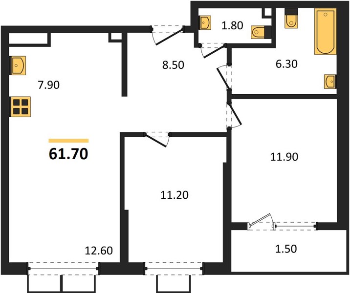 Квартира: 2 к 61,70 кв.м., 9 этаж в комплексе Порто-Ново, 1 очередь, корп.5, сдача: 4кв. , этажей: 18, адрес Цемдолина село, , Застройщик: ГК Догма.