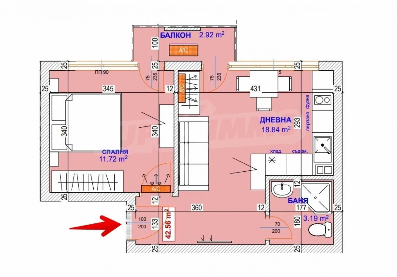 Представляем двухкомнатную квартиру площадью 62,90 м2., часть нового комплекса из трех зданий в районе Траката, г. Варна.