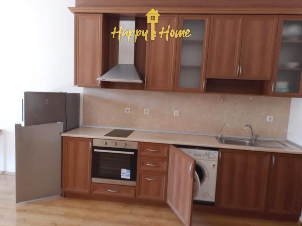 Планировка: прихожая, просторная гостиная с кухонной зоной, две спальни, два санузла и терраса. Продается с мебелью и оборудованием.
