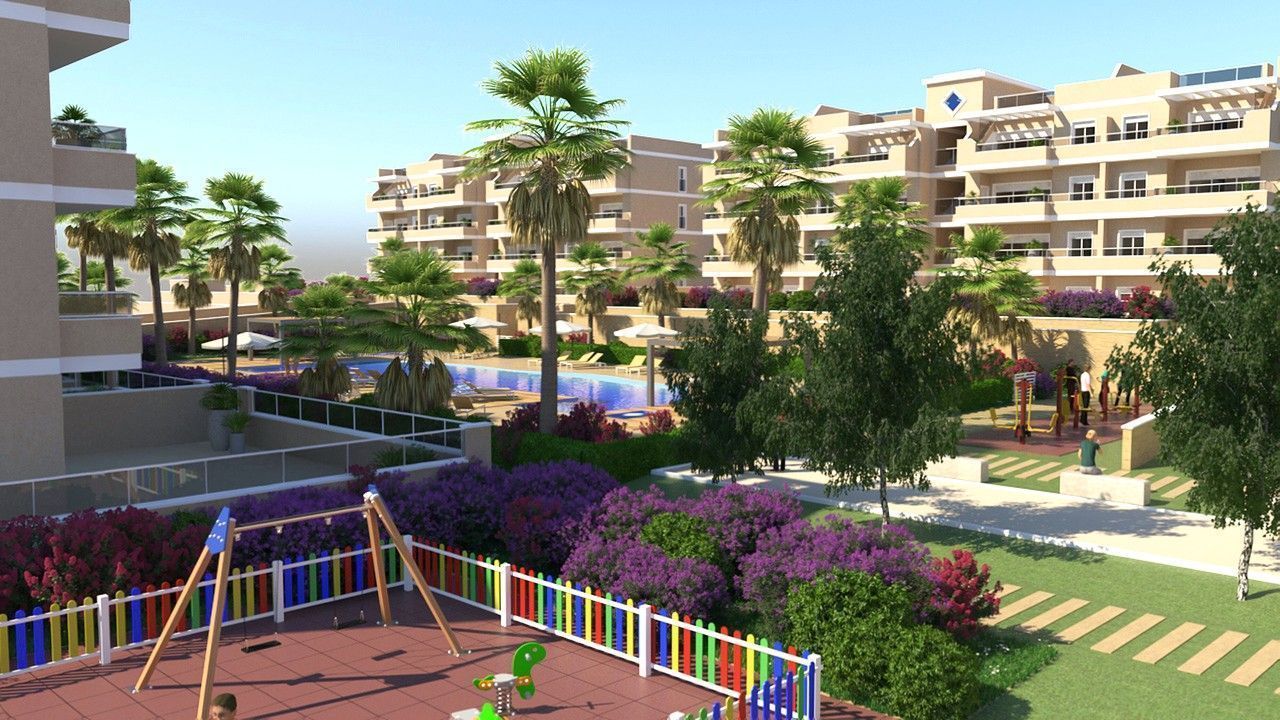 Апартаменты (блок) 3 спальни, терраса, первый этаж с садом, верхний этаж с солярием и парковка в подвальном здании.