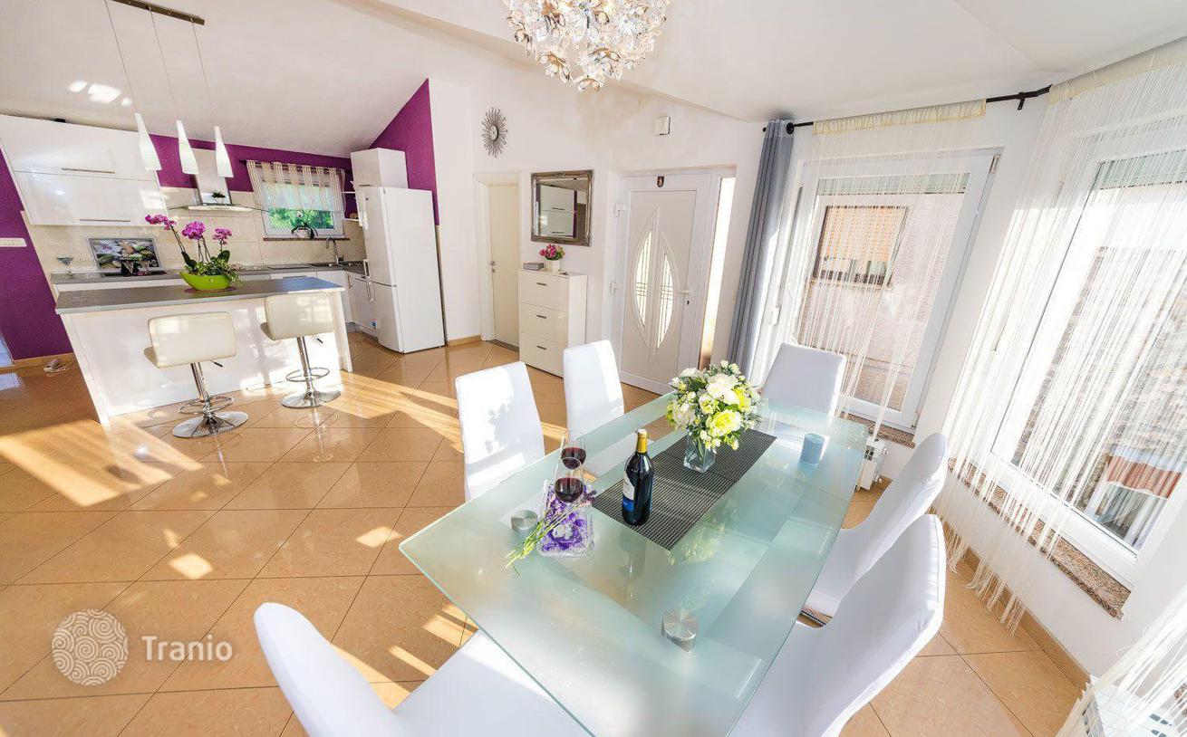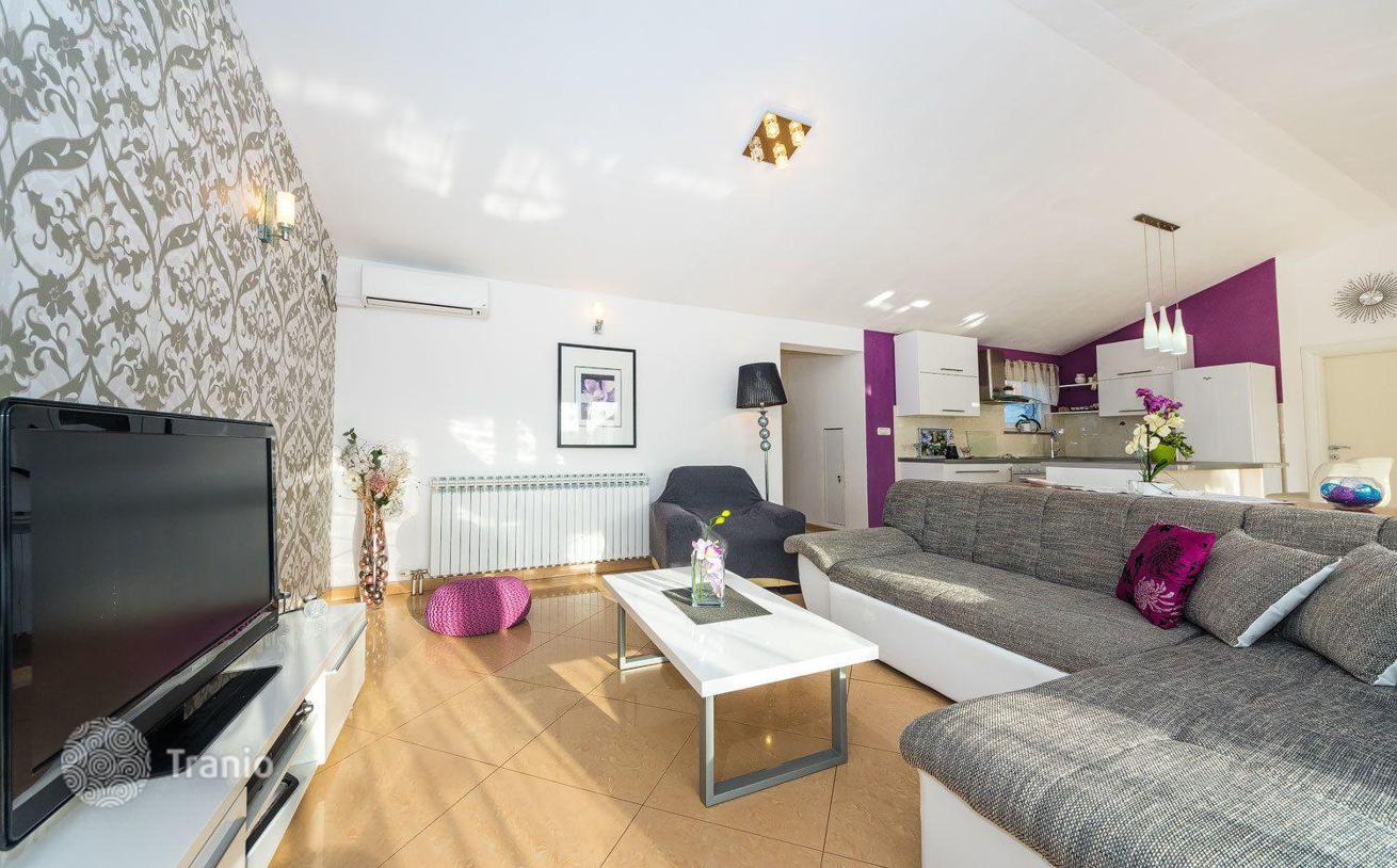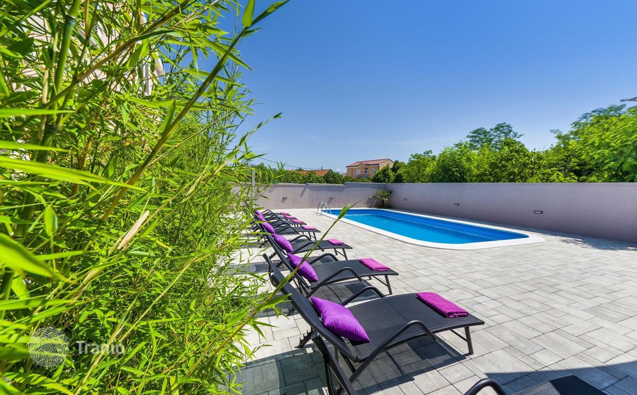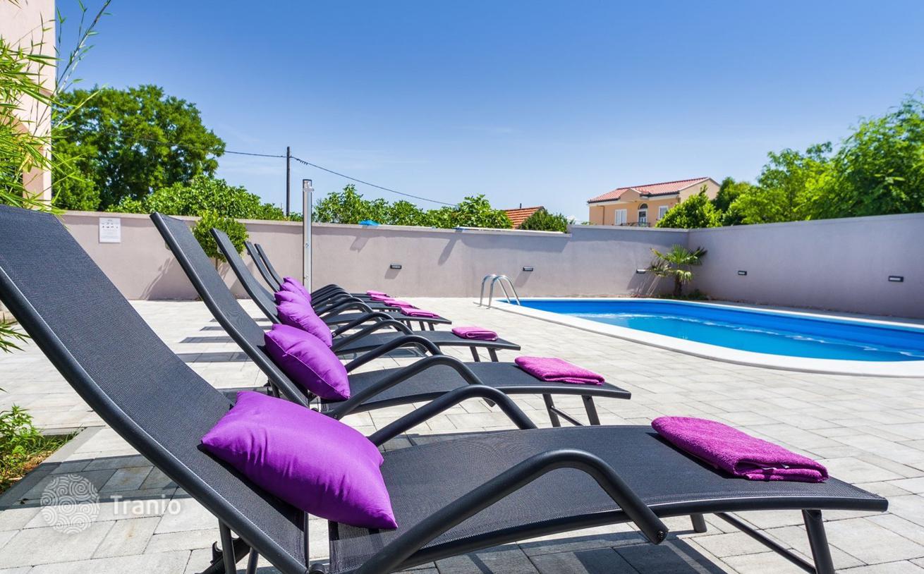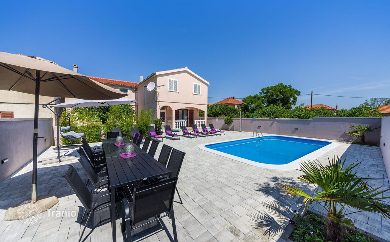 This beautiful holiday home with a heated salted pool is perfect for a relaxing family holiday in Croatia. It is located in the center of Zaton, only 500 meters from the sandy beach. The best part of a house is the great Patio near the pool where guests can hang all together. There is an outside kitchen, grill, big table, jacuzzi and great pool table for relaxation. The house has 3 apartments for up to 12 persons with 6 separate bedrooms, living room with sofa bed for 2 more persons, terrace, bath/ WC with shower, 4 air conditioning, satellite TV, Wi-Fi. All apartments have enough utensils, bed linen and towels. The use of the barbecue and the outdoor pool is already included in the rent of all housing units. Villa is located only 500 m from the nearest beach, which is known for its shallow, warm waters, peace, quiet and the smell of pine trees. Nearby is the old royal town of Nin, just 2 kilometers away. Zaton and its surroundings are places of preserved Mediterranean nature, local gastronomic specialties and a place for those seeking an active vacation without stress in the company of family or friends. Price for sale is: 365 000 euro. ЛИСТЦЕН: 01.04 – 04.05 185 евро/сутки 05.05 – 19.05 — 210 евро/сутки 20.05 – 01.06 — 240 евро/сутки 02.06 – 15.06 — 290 евро/сутки 16.06 – 30.06 — 415 евро/сутки 01.07 – 13.07 — 470 евро/сутки 14.07 – 25.08 — 530 евро/сутки 26.08 – 01.09 — 470 евро/сутки 02.09 – 08.09 — 450 евро/сутки 09.09 – 15.09 — 370 евро/сутки 16.09 – 22.09 — 290 евро/сутки 23.09 – 29.09 — 240 евро/сутки 30.09 – 13.10 — 210 евро/сутки 14.10 – 27.10 — 185 евро/сутки