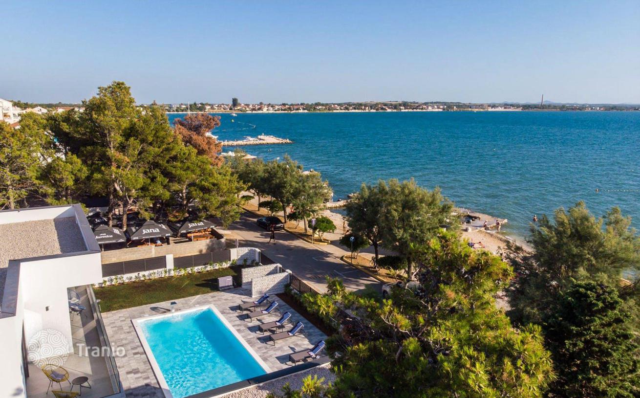 Недавно построенная вилла, расположенная в районе Задара, рядом с морем и галечным пляжем.